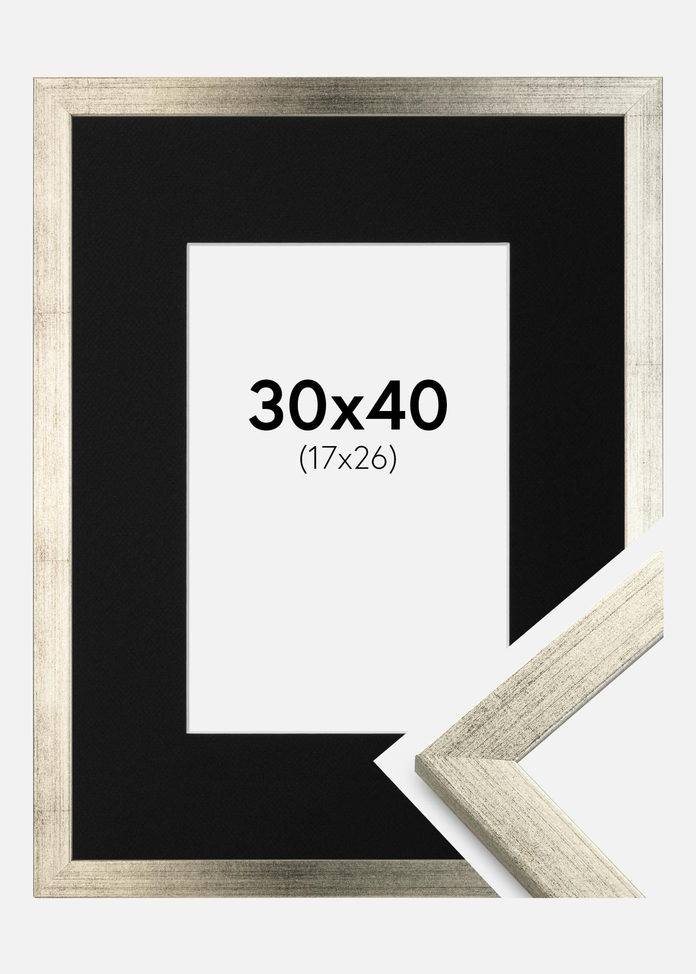 Okvir Profinjeni Srebro 30x40 cm - Paspartu Crno 18x27 cm