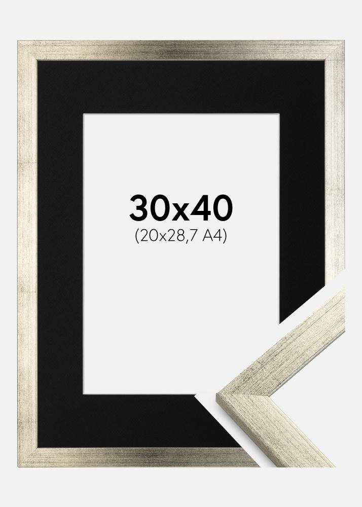Okvir Profinjeni Srebro 30x40 cm - Paspartu Crno 21x29,7 cm (A4)