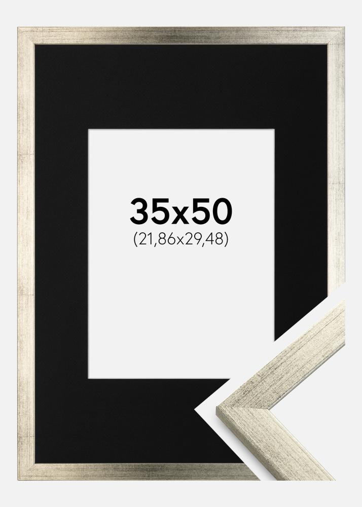 Okvir Profinjeni Srebro 35x50 cm - Paspartu Crno 9x12 inches