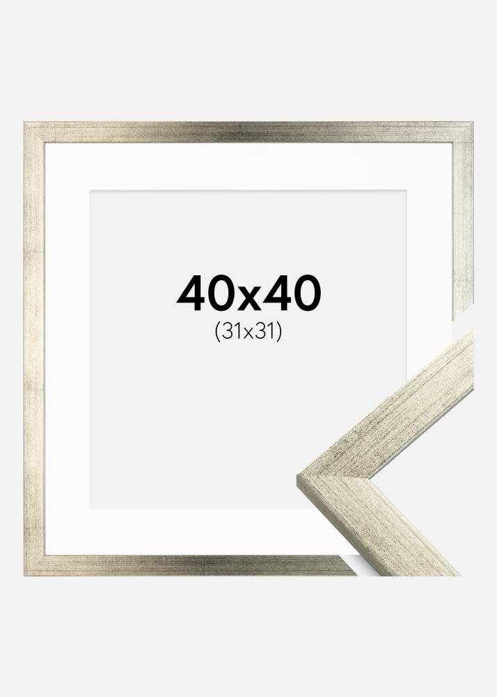 Okvir Profinjeni Srebro 40x40 cm - Paspartu Bijelo 32x32 cm