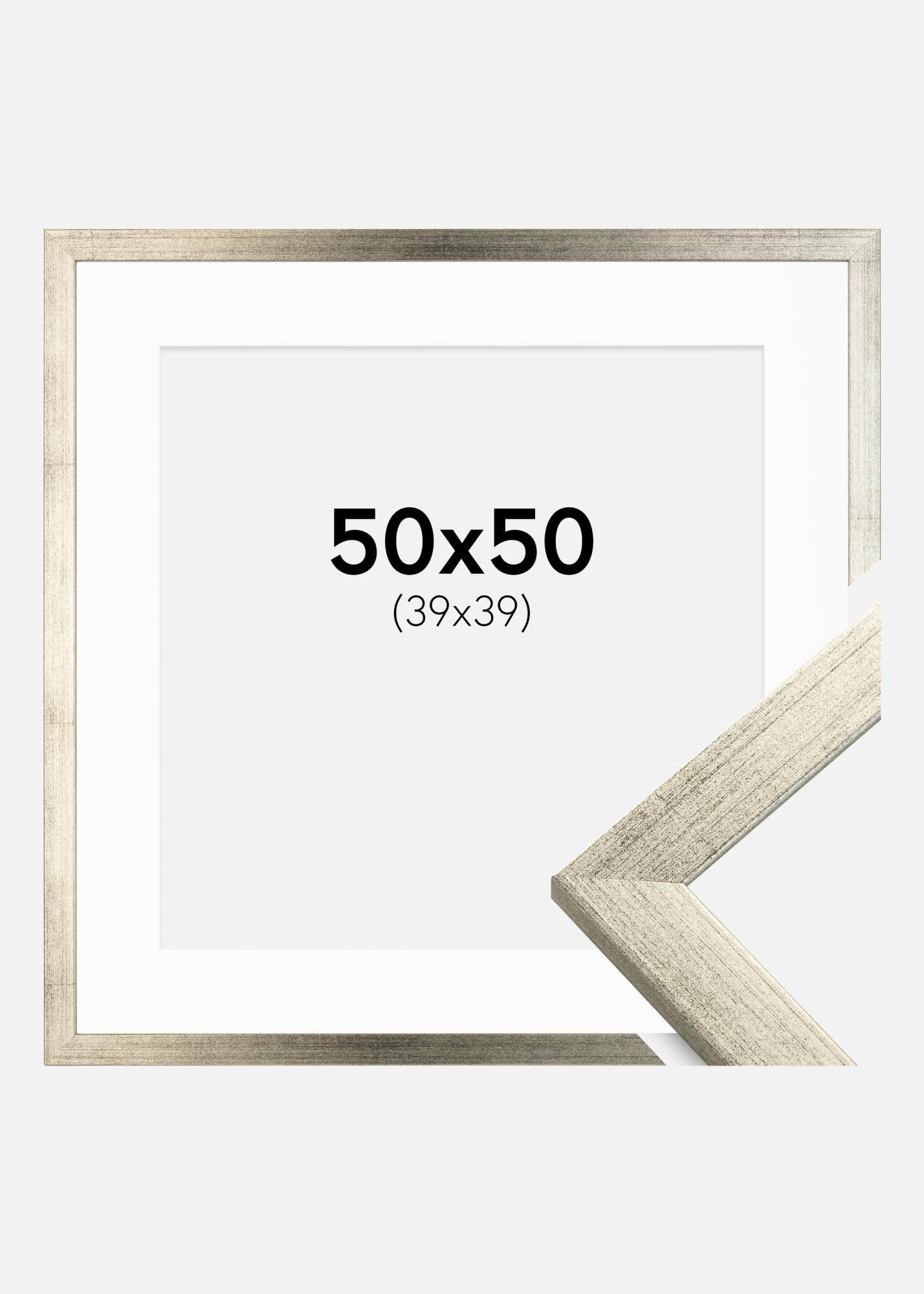 Okvir Profinjeni Srebro 50x50 cm - Paspartu Bijelo 40x40 cm