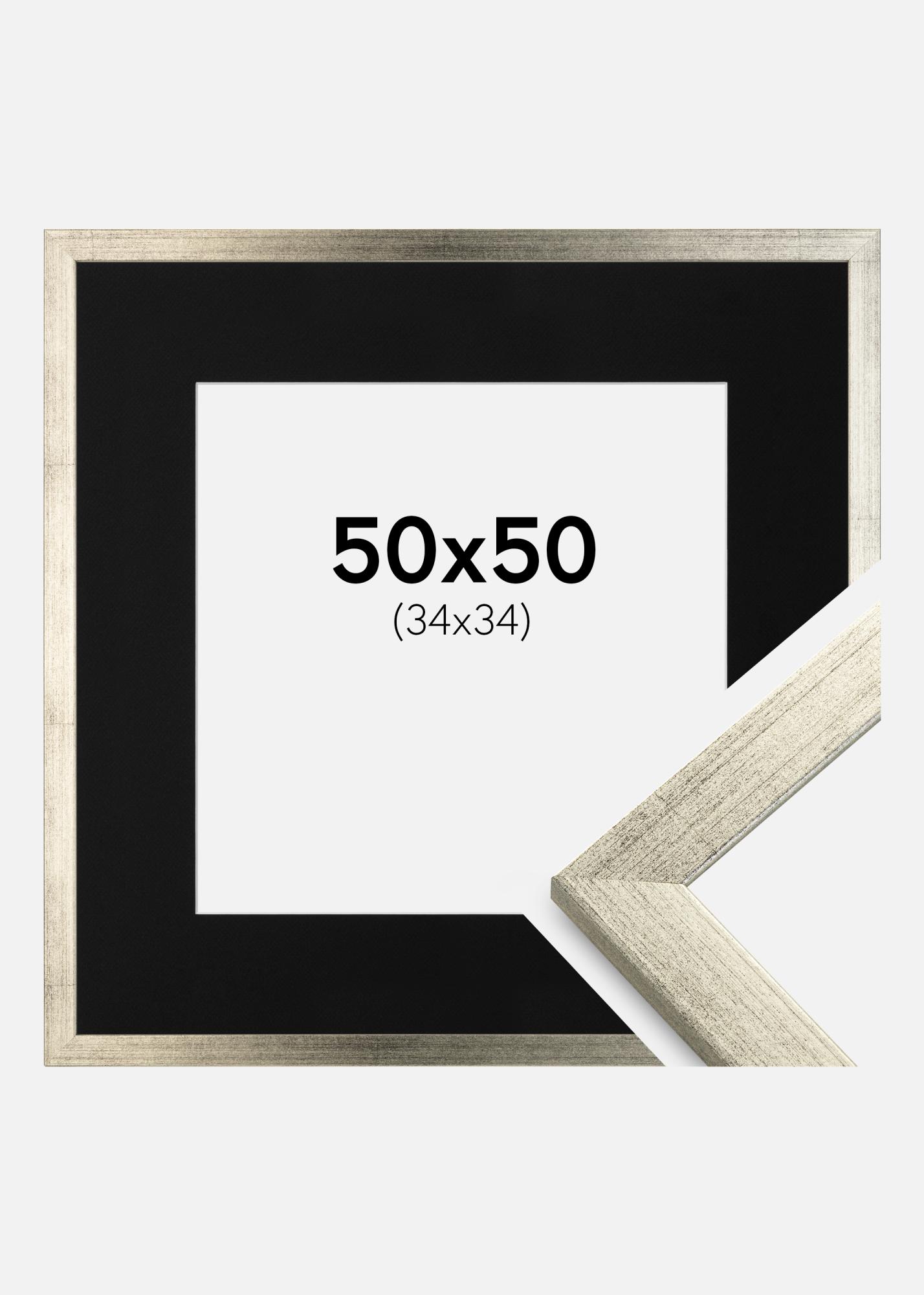 Okvir Profinjeni Srebro 50x50 cm - Paspartu Crno 35x35 cm