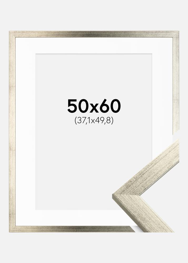 Okvir Profinjeni Srebro 50x60 cm - Paspartu Bijelo 15x20 inches