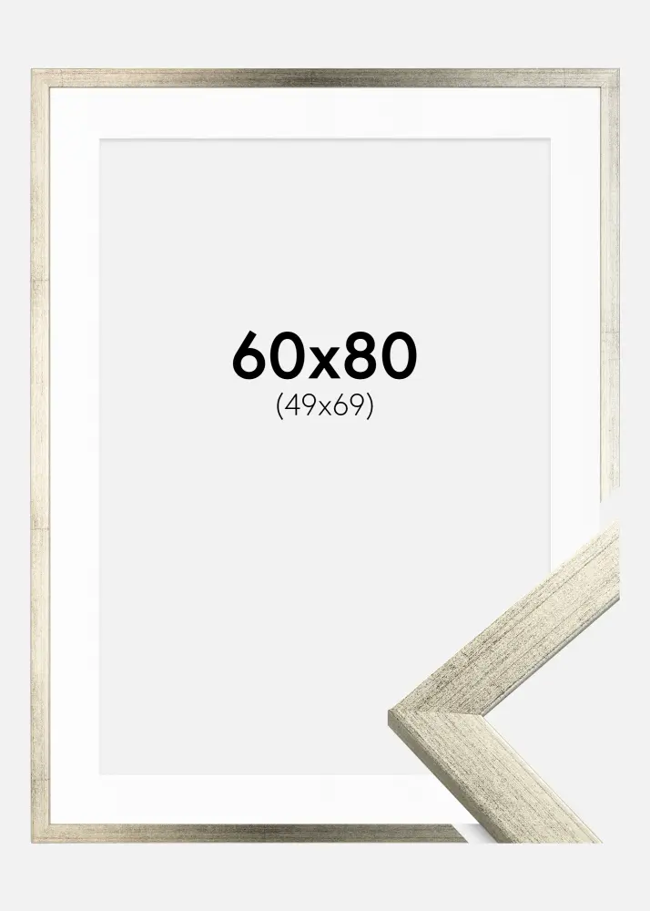 Okvir Profinjeni Srebro 60x80 cm - Paspartu Bijelo 50x70 cm