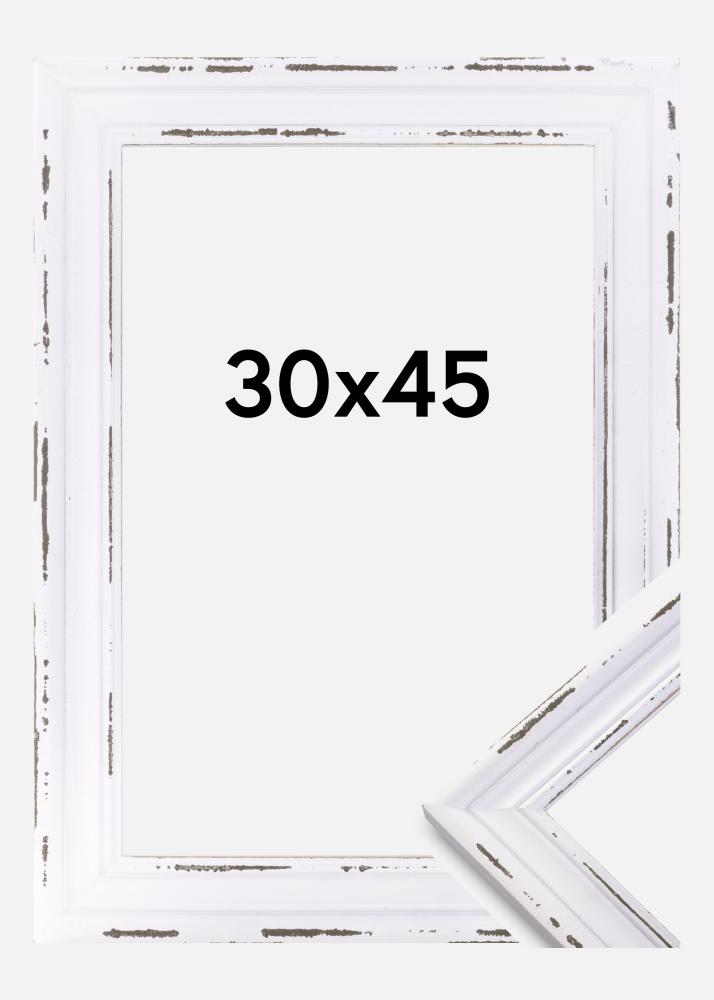 Ako nemate sreće da naslijedite stare uokvirene obiteljske fotografije, možete sami stvoriti ove slike. Ovdje imamo dekorativno istrošen okvir koji savršeno odgovara svrsi! Okvir je bijel s klasično profiliranim rubom i oguljenim dijelovima gdje se vidi drvo. Odaberite između različitih veličina!