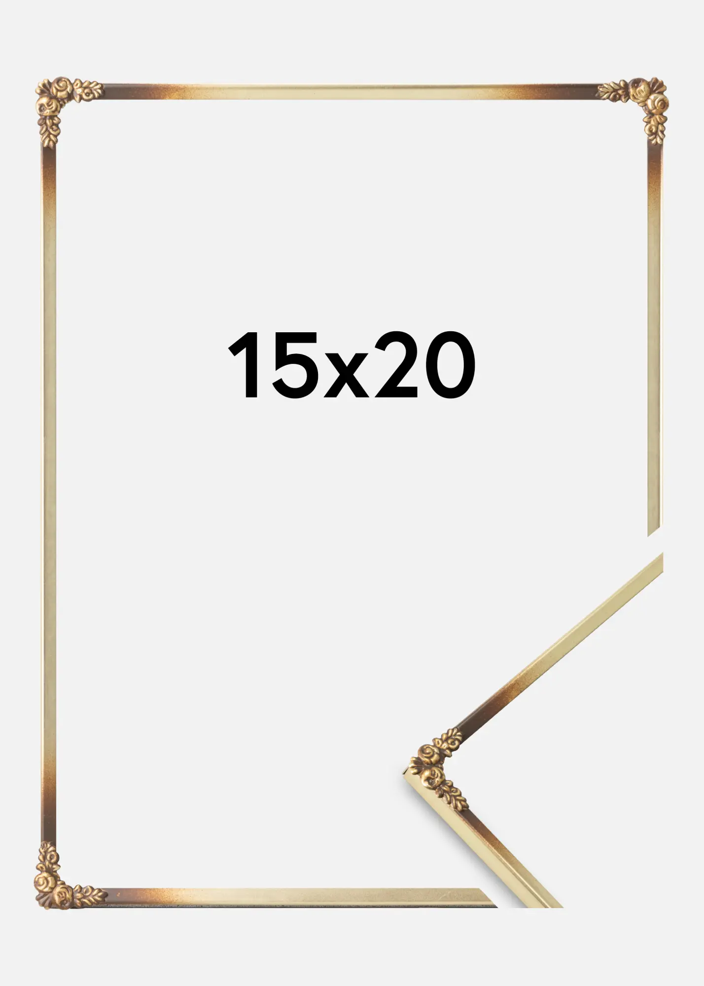 Rosen Metalik Zlatna je klasičan okvir koji daje sofisticiran okvir za sve vaše motive. Svaki kut je ukrašen malim ružama koje su malo "spaljene" kako bi se postigao pravi završni sjaj. Okvir je izrađen od zlatne metala što ga čini robusnim, a istovremeno pojačava ekskluzivni osjećaj koji okvir pruža.