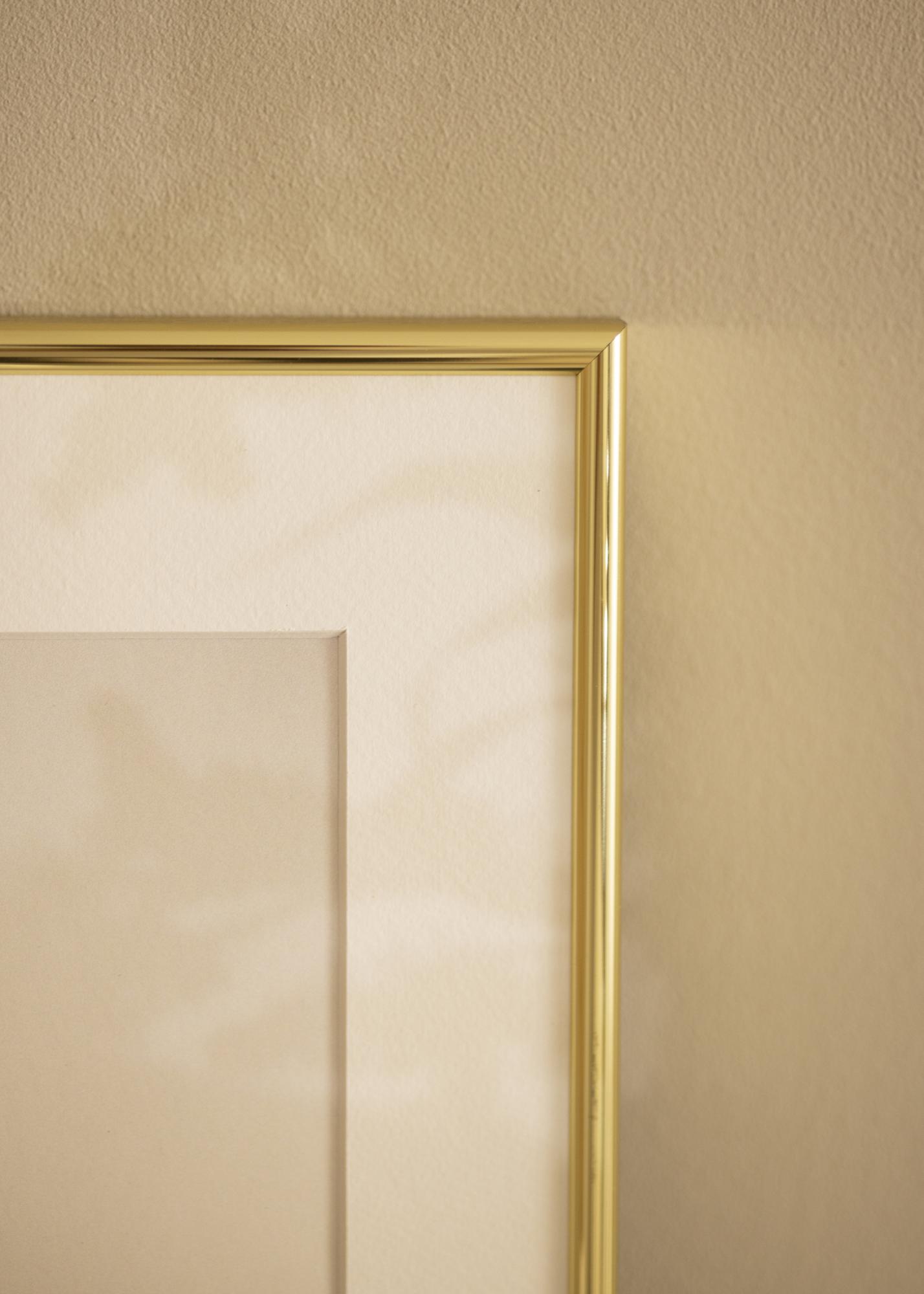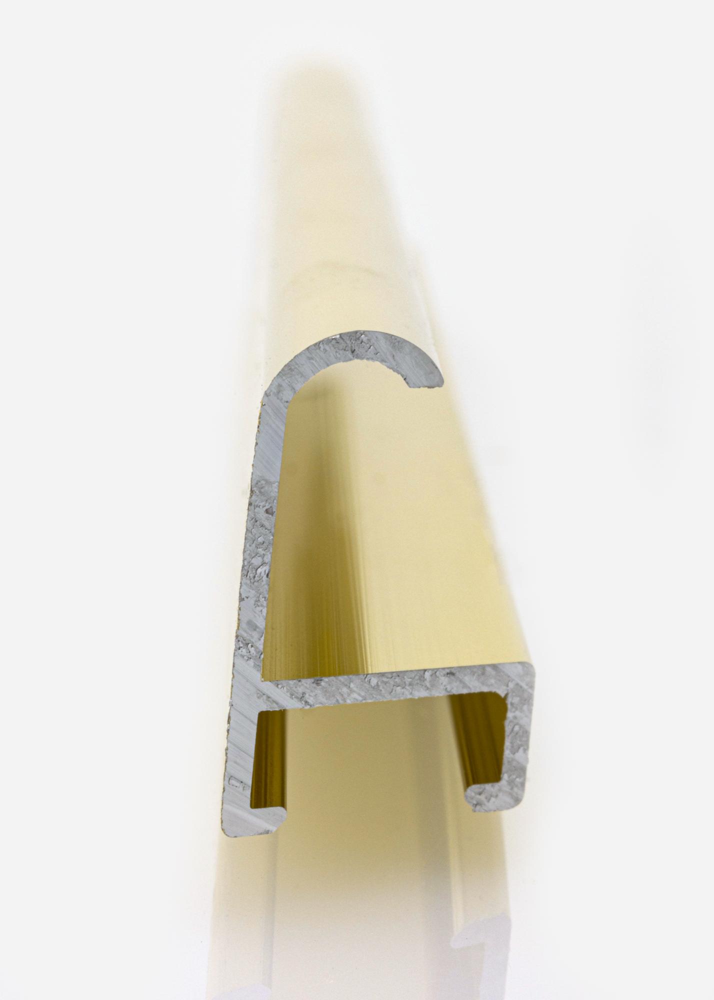 Moderna sjajna zlatna rama s četkanim stranama koja ima duboki profil od 26 mm. To omogućuje da motiv iziđe iz zida i stvara prekrasan 3D efekt. Savršeno kada tražite jednostavnu zlatnu ramicu koja daje vašim slikama elegantnu uokvirivanje.