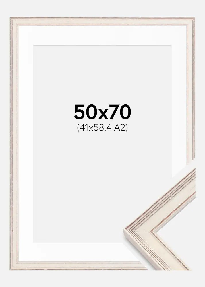 Okvir Shabby Chic Bijelo 50x70 cm - Paspartu Bijelo 42x59,4 cm (A2)