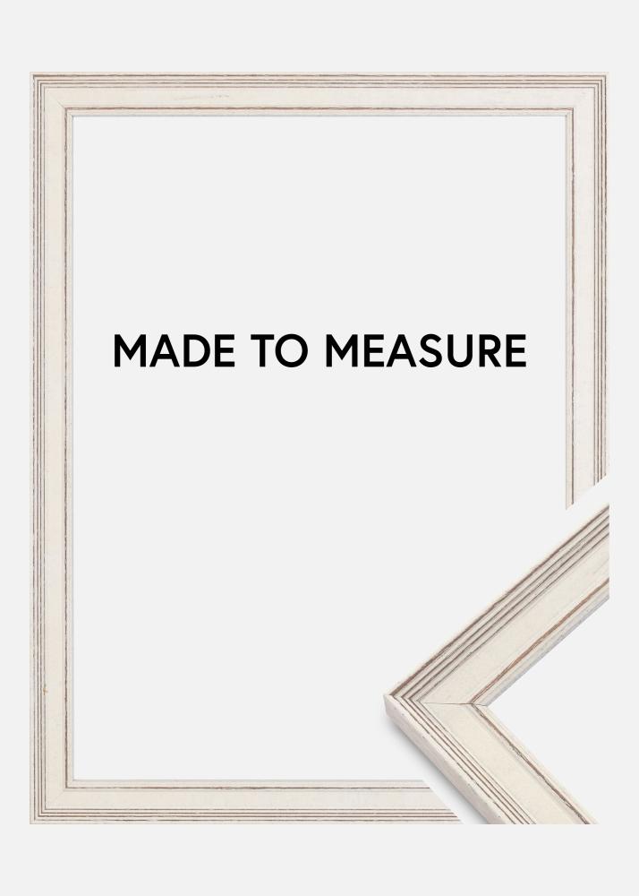 Shabby Chic Okvir za slike Bijeli 35A - Bilo koja veličina izrađuje se prema vašim željama u našoj vlastitoj radionici okvira. Letvica je izrađena od drva i obrađena tako da izgleda staro i pomalo istrošeno.