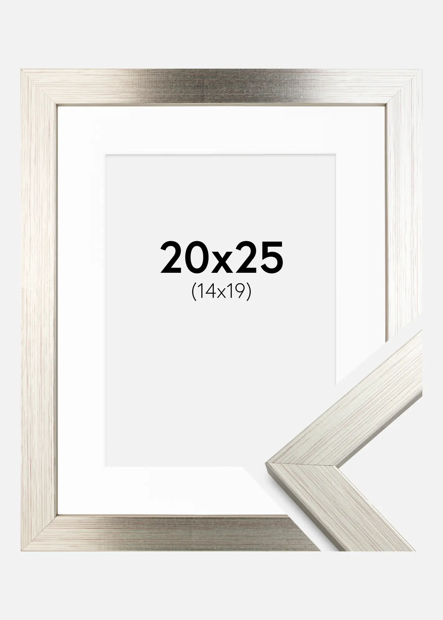 Okvir Srebro Wood 20x25 cm - Paspartu Bijelo 15x20 cm