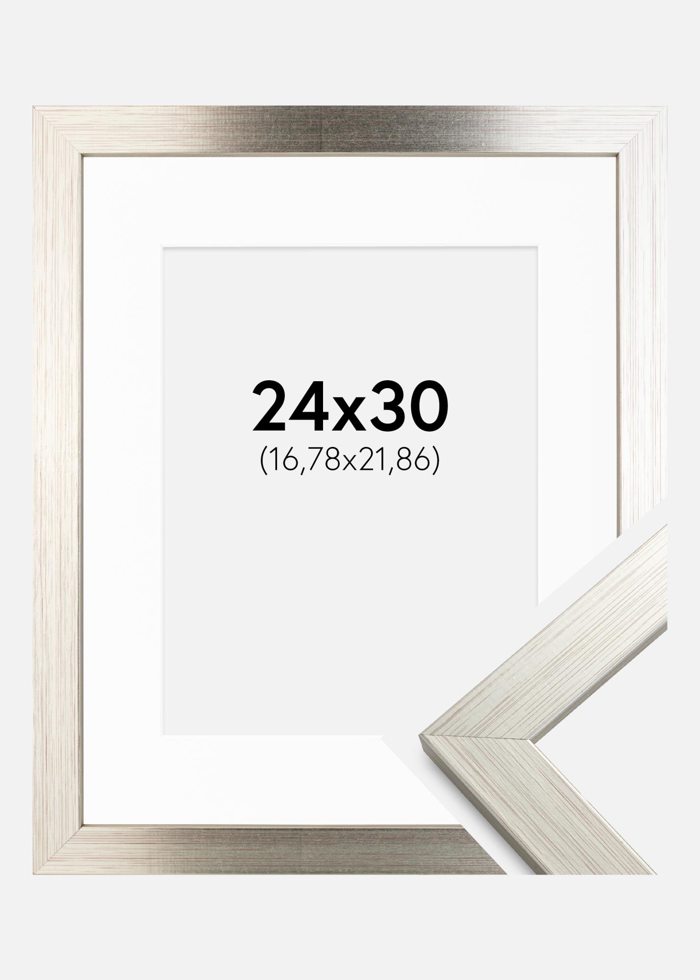 Okvir Srebro Wood 24x30 cm - Paspartu Bijelo 7x9 inches