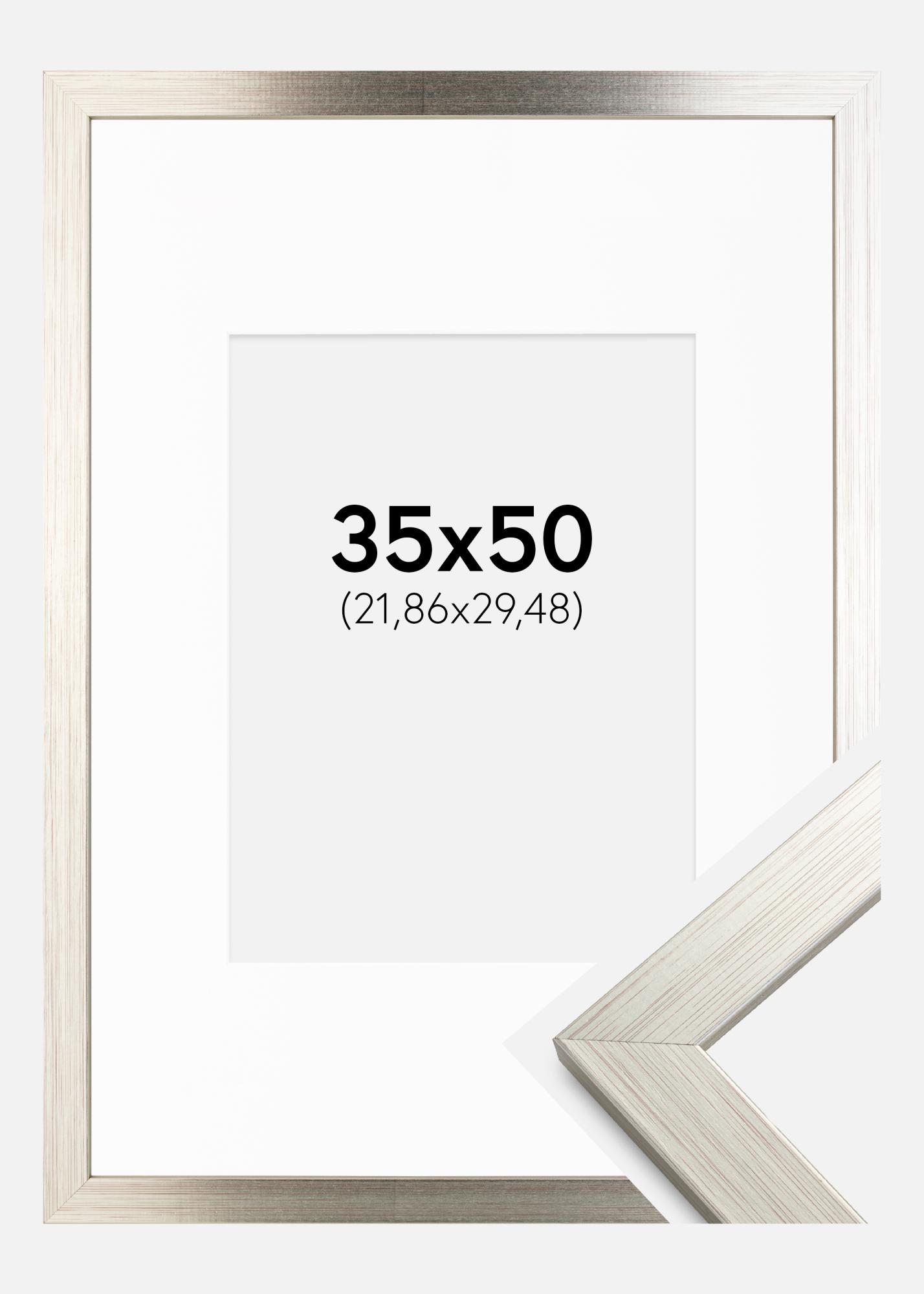 Okvir Srebro Wood 35x50 cm - Paspartu Bijelo 9x12 inches