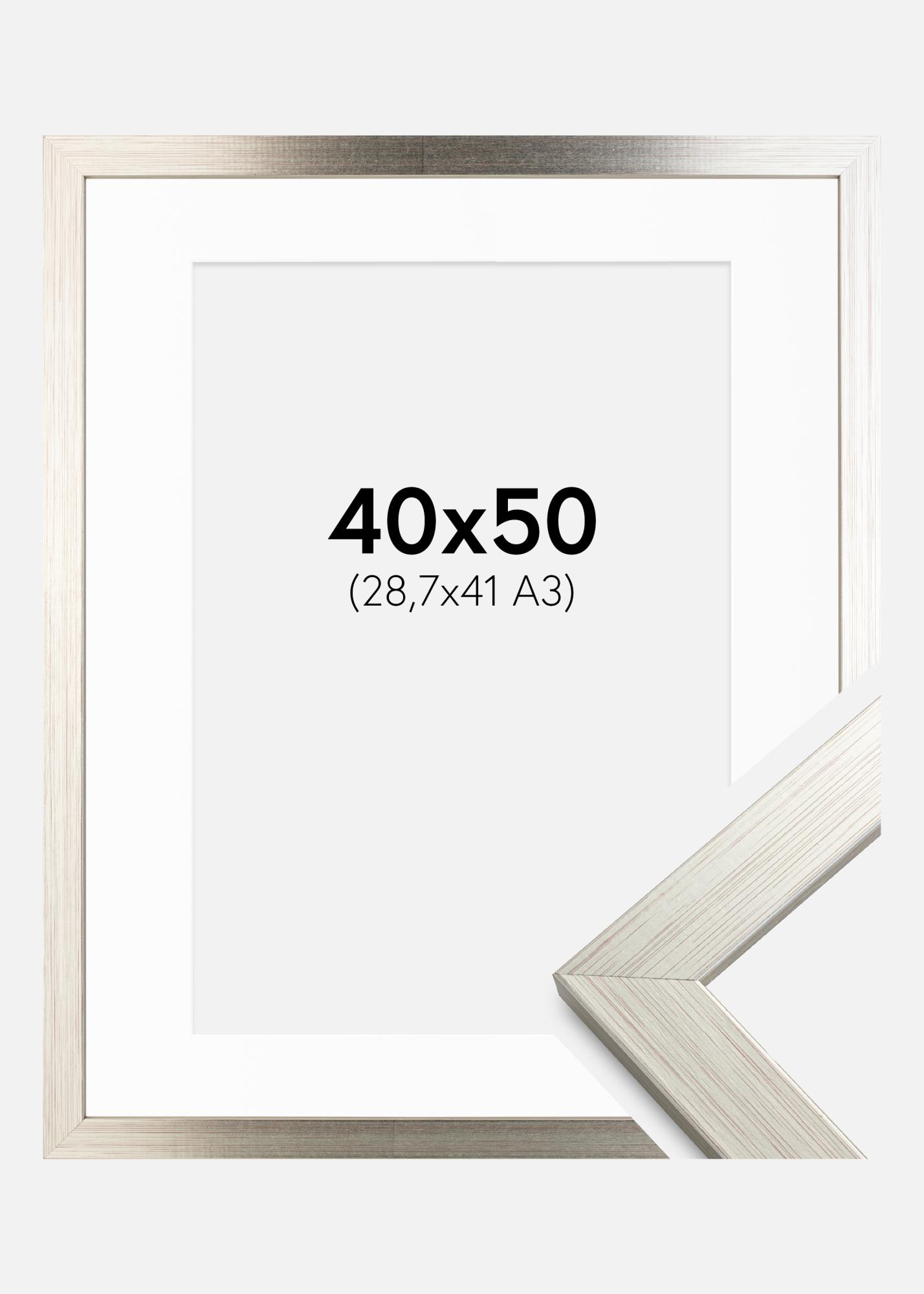 Okvir Srebro Wood 40x50 cm - Paspartu Bijelo 29,7x42 cm (A3)