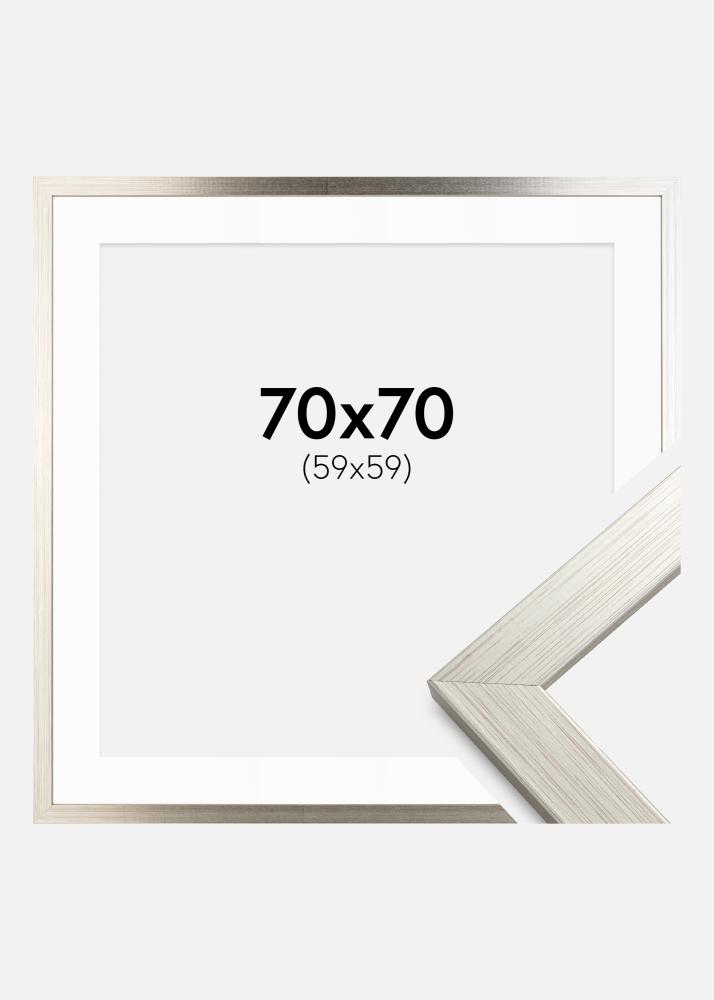 Okvir, s vanjskim dimenzijama 73,4x73,4 cm, izrađen je s mat srebrnim finišem koji unosi moderan dodir u vaš interijer. Profil širine 22 mm i dubine 15 mm daje čvrst i izražen rub oko vaše slike. S bijelim passepartoutom, vaše umjetničko djelo veličine 60x60 cm dobiva dodatnu dimenziju, a boje i detalji slike suptilno se ističu.