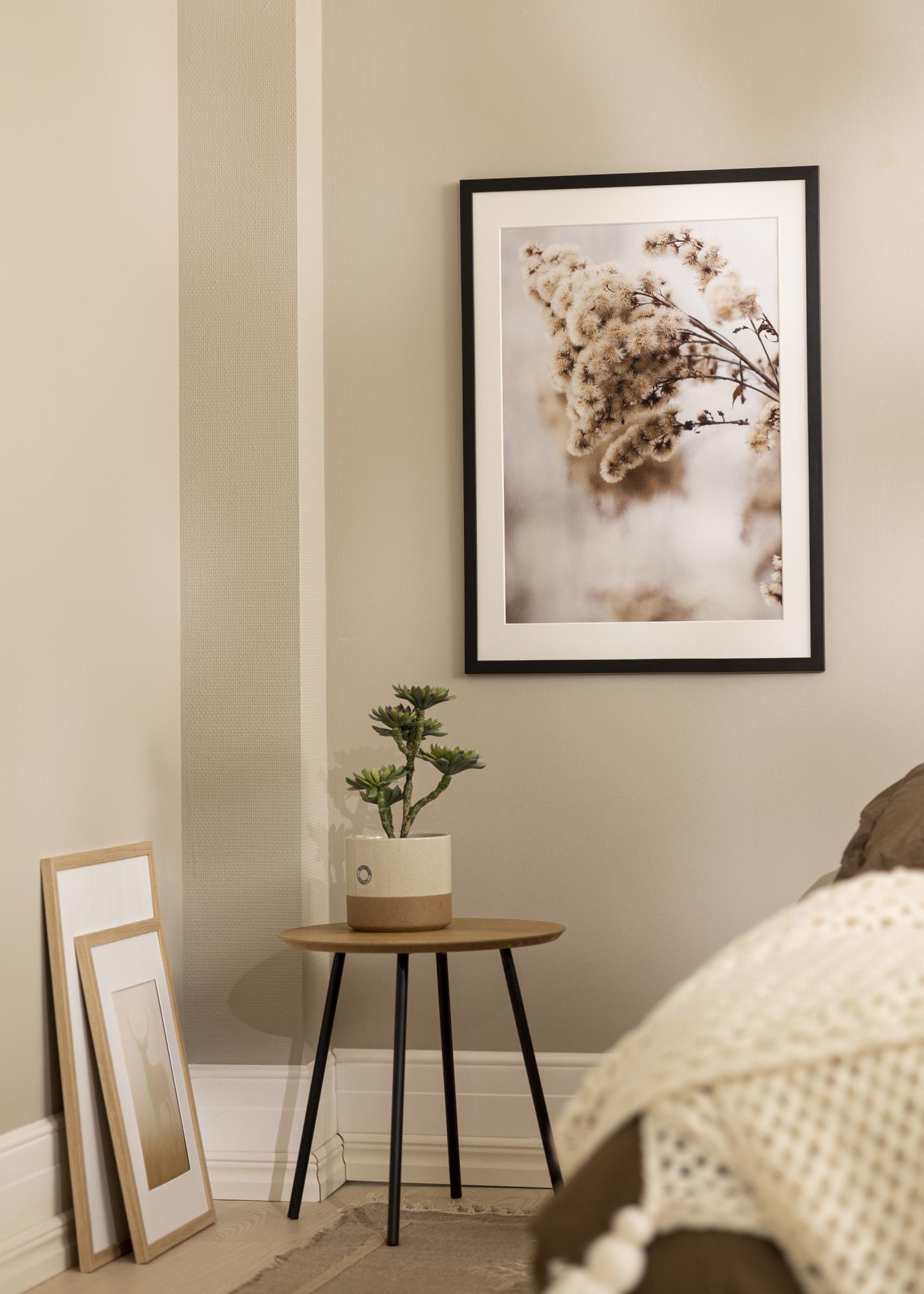 Okvir ima širinu od 20 mm i dubinu od 14 mm, što pruža stabilan i robusan osjećaj. Mat površina u kombinaciji s crnom bojom daje bezvremenski i moderan izgled koji se uklapa u većinu stilova interijera. Passepartout ne samo da pomaže da se istakne slika, već također štiti od direktnog kontakta stakla s motivom, što može spriječiti oštećenja i očuvati kvalitetu slike tijekom vremena.