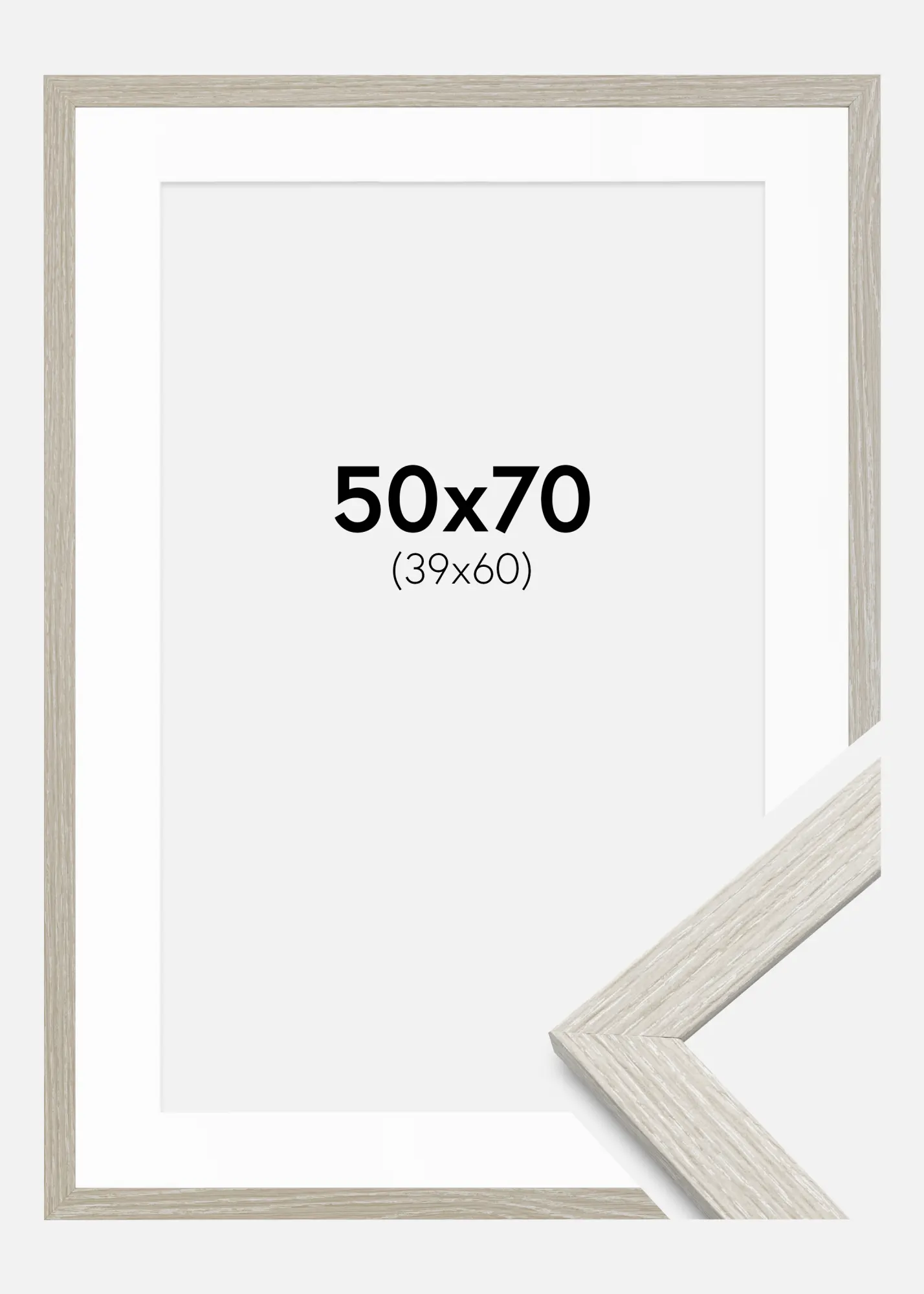 Okvir Stilren svijetlosiva hrast 50x70 cm - Paspartui Bijela 40x61 cm