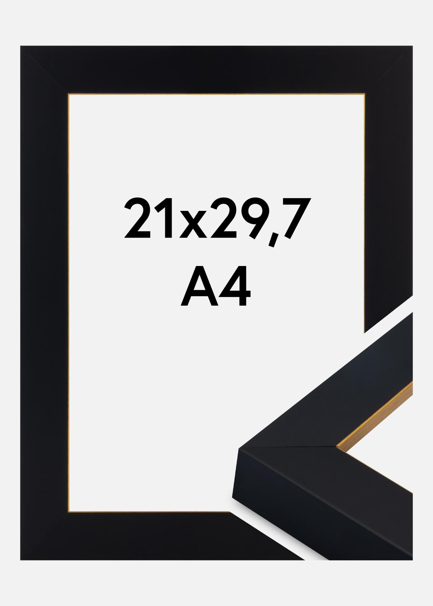 Ovaj Okvir za fotografije savršena je kombinacija modernog dizajna i klasične elegancije. Sa svojom veličinom od 21x29,7 cm (A4), izvrsno ističe tvoje omiljene motive. Crna boja s elegantnim zlatnim rubom daje Okviru profinjen i sofisticiran izgled koji lijepo nadopunjuje i fotografije i postere.