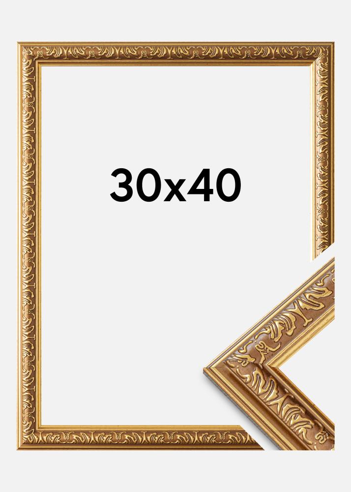 Ovaj zlatni okvir za slike savršen je spoj klasične elegancije i moderne funkcionalnosti. S veličinom od 30x40 cm idealan je za isticanje vaših omiljenih motiva, bilo da su to umjetnička djela ili fotografije. Luksuzna zlatna završna obrada i dekorativni, ukrašeni detalji duž unutarnjeg ruba okvira daju sofisticirani dodir koji izvrsno odgovara u klasičnim i elegantnim stilovima uređenja.