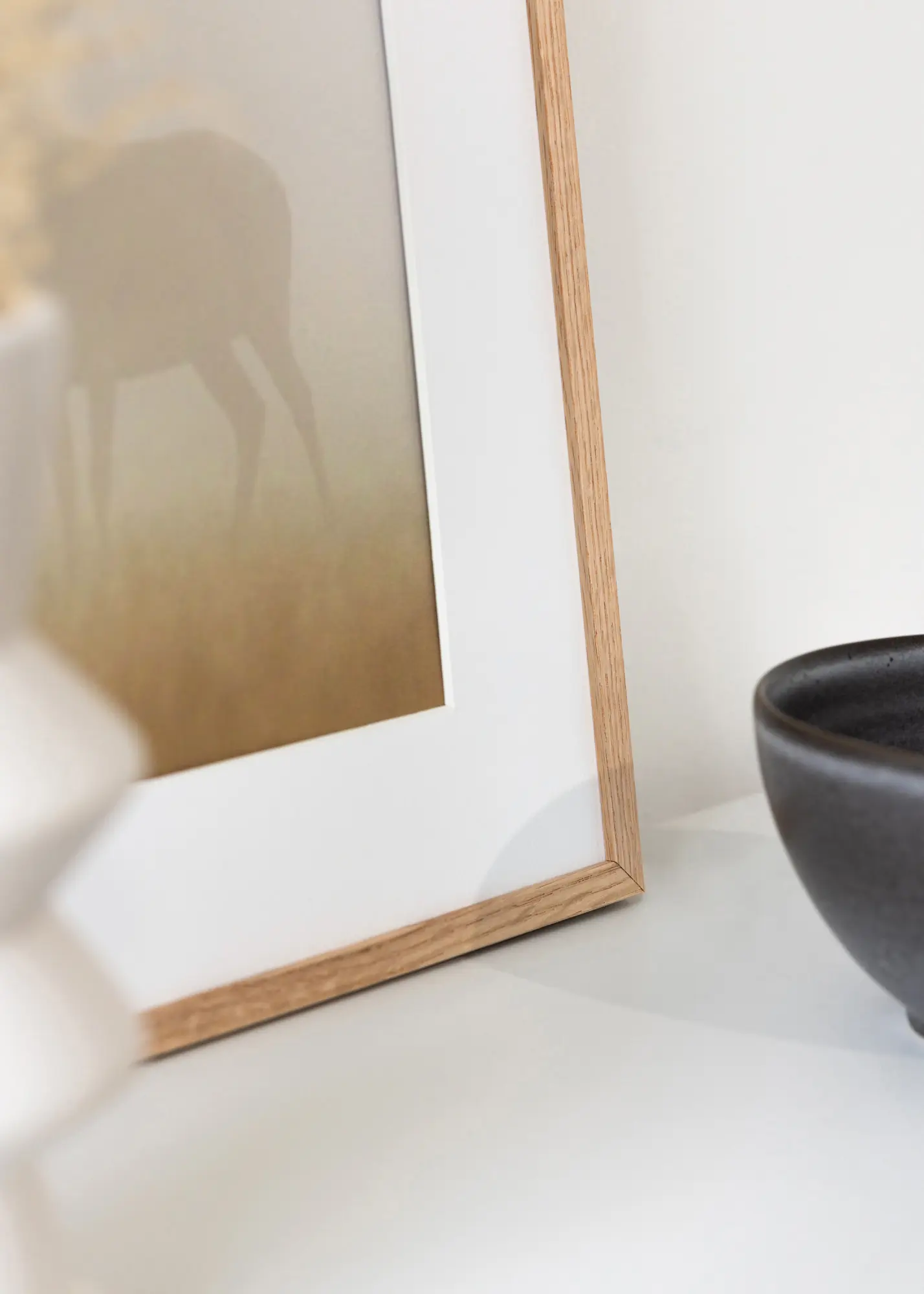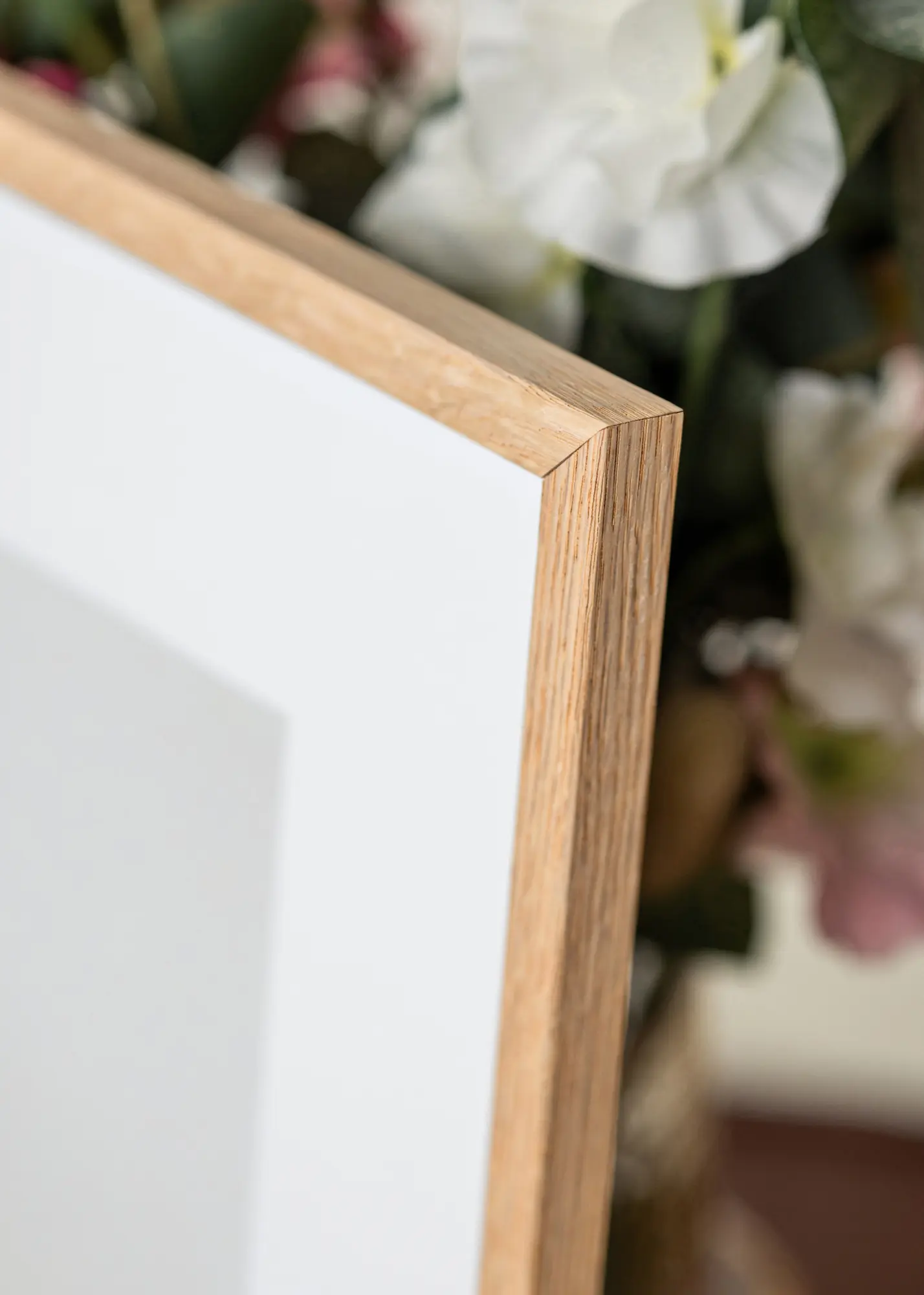 Doživite prirodnu ljepotu i toplinu našeg elegantnog okvira u boji hrasta, savršenog za isticanje vaših omiljenih slika. S elegantnim mat završetkom i širinom okvira od 11 mm, ovaj okvir daje diskretnu, ali ipak istaknutu ivicu vašim fotografijama. Bijela paspartu uključena je kako bi vašoj slici veličine 9x13 cm dodala dodatnu dubinu i fokus, dok istovremeno štiti sliku od dodirivanja stakla.
