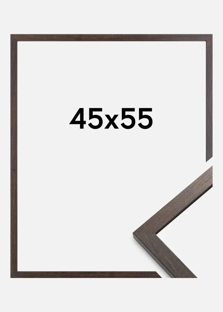 Ovaj okvir za fotografije u boji oraha savršena je kombinacija stila i funkcionalnosti. Dimenzija 45x55 cm idealan je za isticanje vaših omiljenih fotografija, umjetnina ili postera. Tamnosmeđa, mat završna obrada daje topao i prirodan osjećaj koji se uklapa u klasične i moderne interijere. Minimalistički dizajn s tankim okvirom širine 15 mm stvara diskretnu uokvirenu koja dopušta da motiv bude u prvom planu.