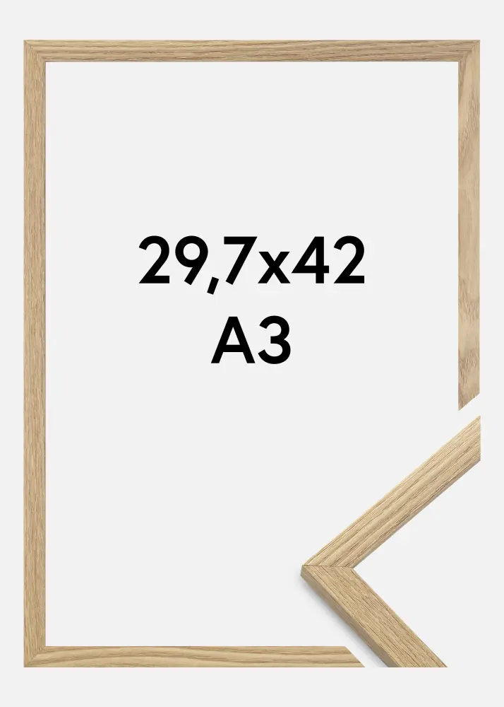 Ovaj okvir za slike izraÄen je od MDF materijala i ima elegantnu povrÅ¡inu u boji hrasta te pravo staklo. Tanak okvir samo 14 mm daje elegantan dojam. Stražnja strana drži se na mjestu savitljivim klinovima, i lako ju je otkaÄiti kad želite umetnuti svoje slike.