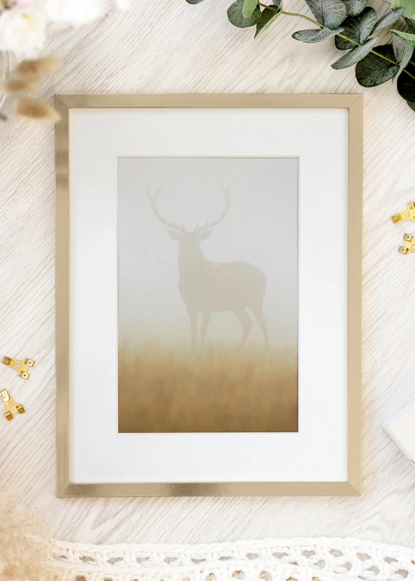 Bijeli passepartout nadopunjuje vaÅ¡u fotografiju i stvara elegantan izgled. Okvir je opremljen s praktiÄnim metalnim vjeÅ¡alicama za jednostavno vjeÅ¡anje u oba formata, vodoravno i okomito.