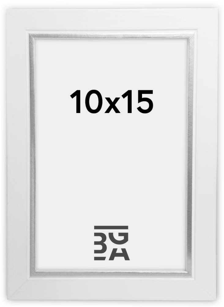 Elegantan bijeli okvir za fotografije od drva s malim dodatnim "Twistom" u obliku lijepog srebrnog ruba najbližeg motivu. Savršen okvir za portrete. Savršen za postavljanje na policu za slike za lijepi kolaž.
