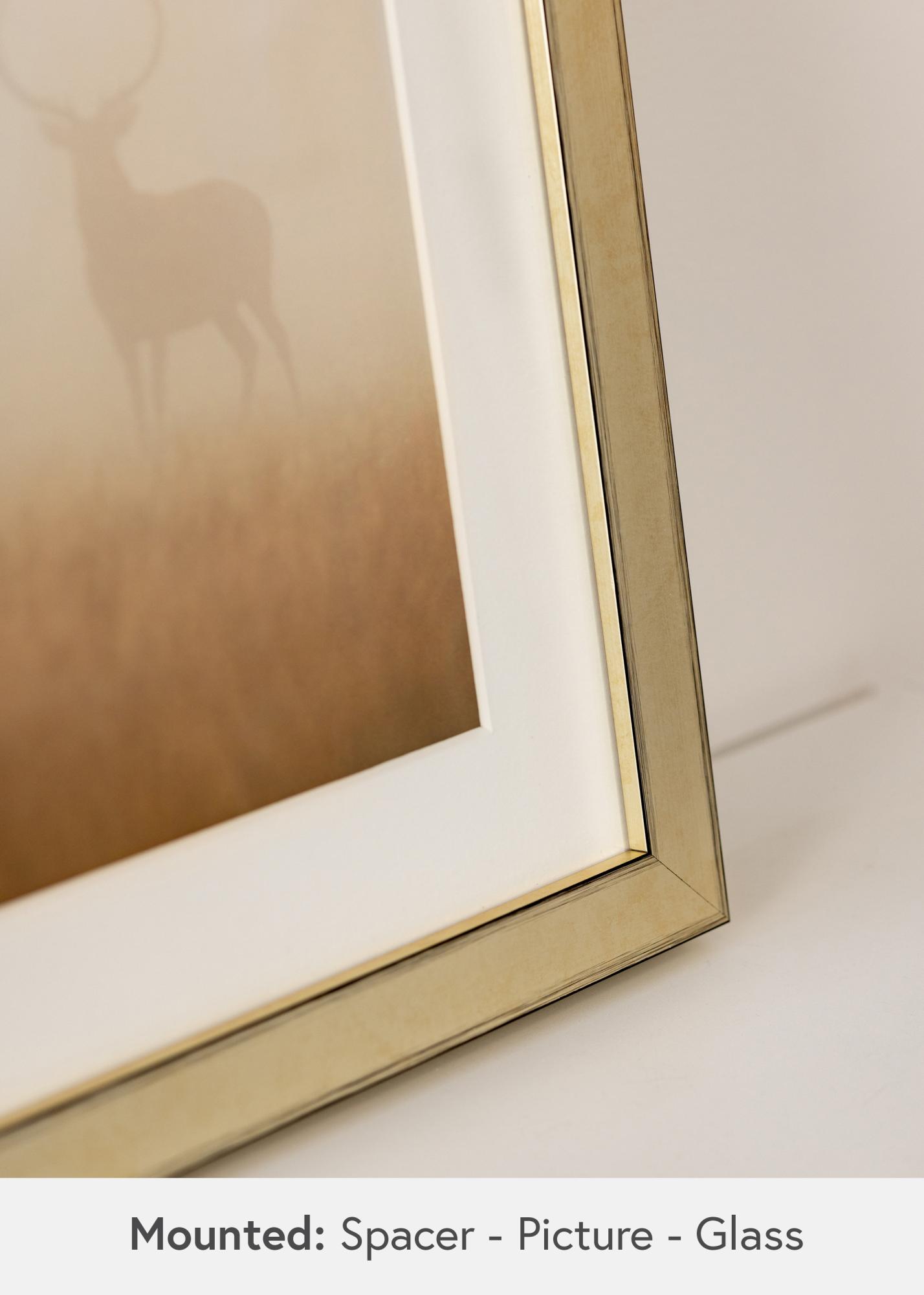 S Okvirom Tyr Zlato imate mogućnost prilagodbe kako želite predstaviti svoj motiv. Možete ga smjestiti na samom kraju okvira za plutajući efekt ili bliže prednjem dijelu za tradicionalniji izgled. Ova fleksibilnost olakšava usklađivanje okvira s vašim umjetničkim djelom i stilom uređenja interijera.
