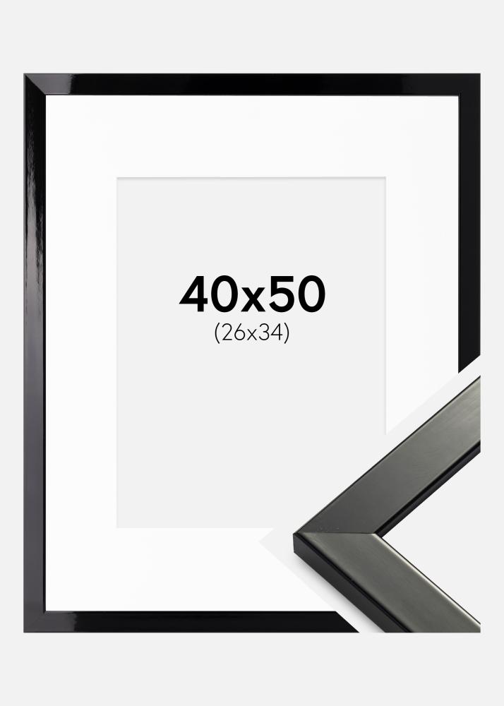 Okvir Uppsala Crna Visoki sjaj 40x50 cm - Paspartu Bijelo 27x35 cm
