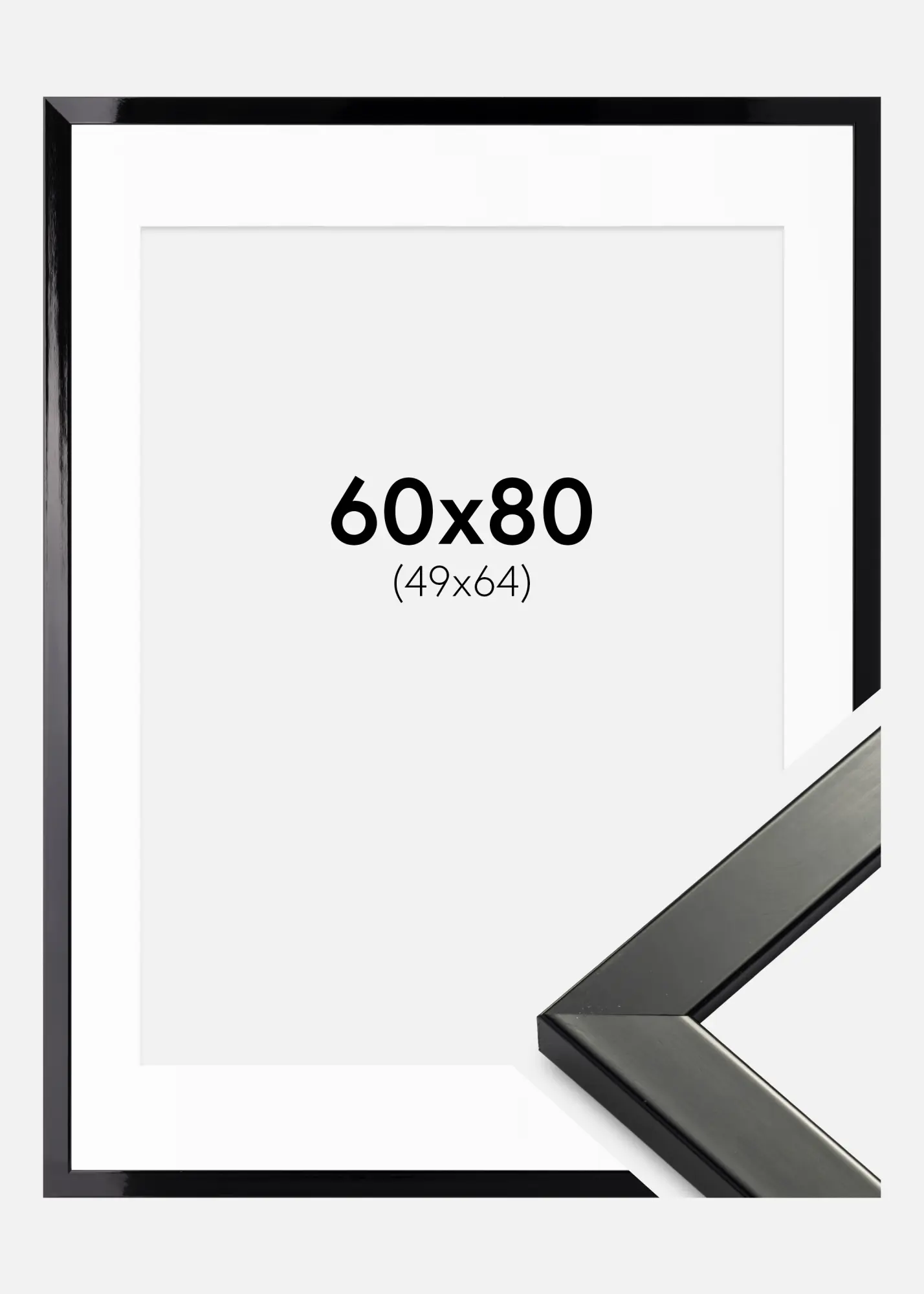 Okvir Uppsala Crna Visoki sjaj 60x80 cm - Paspartu Bijelo 50x65 cm