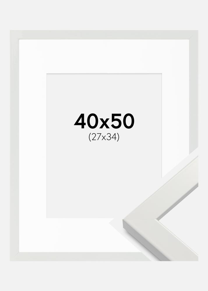 Okvir White Wood Glossy 40x50 cm - Paspartu Bijelo 28x35 cm