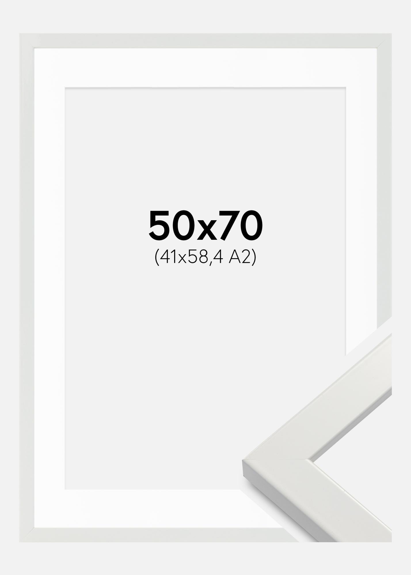 Okvir White Wood Glossy 50x70 cm - Paspartu Bijelo 42x59,4 cm (A2)