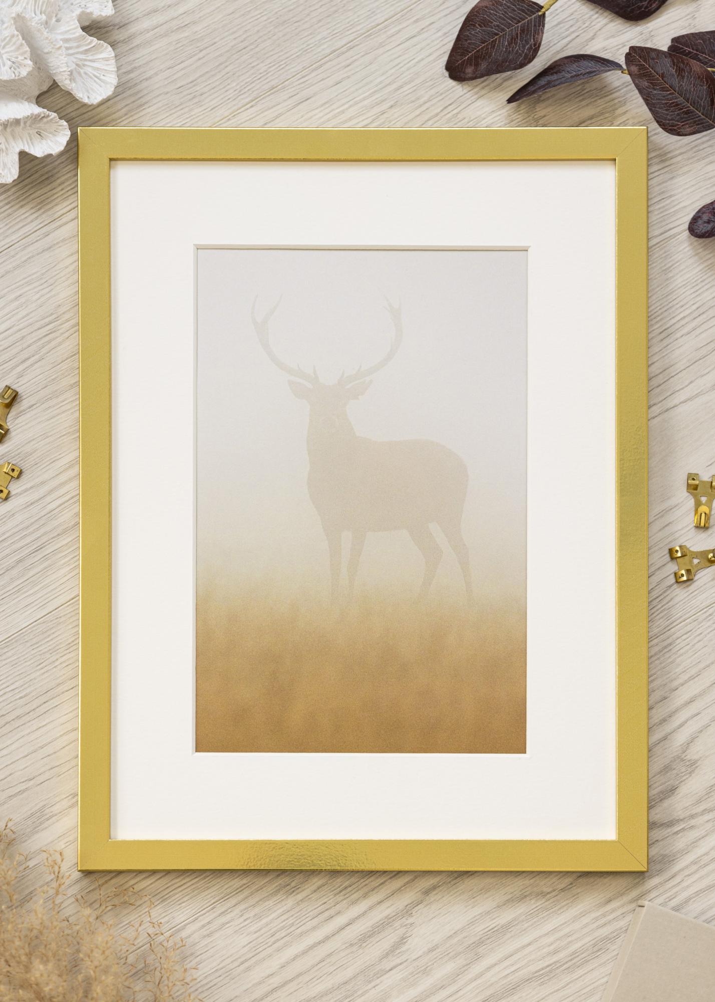 Okvir ima 18 mm široku okvirnu letvicu i dubinu od 18 mm, što mu daje čvrst i stabilan osjećaj. Oštri, čisti uglovi doprinose minimalističkom izgledu, što ga čini pogodnim za klasične i moderne interijere. Zlatna površina daje topao i pozivajući osjećaj, savršen za isticanje vaših najdražih fotografija ili umjetničkih djela.