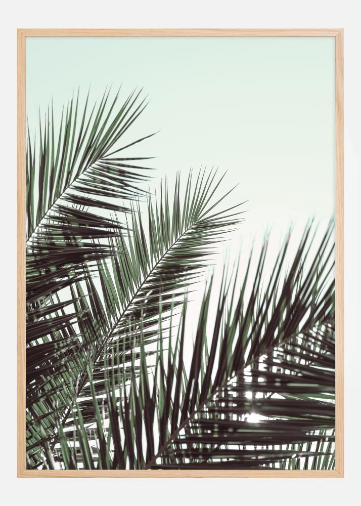 Pretvorite svoj dom u tropsku oazu s ovim sofisticiranim posterom koji prikazuje bujne palmine listove na pastelnom nebu. Ovaj plakat hvata lagani povjetarac i mir koji se može pronaÄi samo u toploj klimi. Detaljni zeleni listovi prekrasno su prikazani na nježnoj nebeskoplavoj pozadini, stvarajuÄi osjeÄaj vjeÄnog ljeta i prirode u vaÅ¡em prostoru.