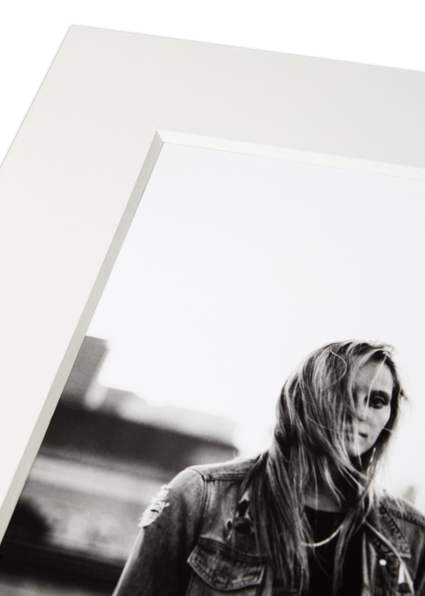 Ovaj bijeli passepartout izrađujemo po narudžbi u našoj vlastitoj radionici – prema vašim željama o dimenzijama. Passepartout je i bez kiseline i PH-neutralan, a materijal dolazi iz održivog šumarstva.