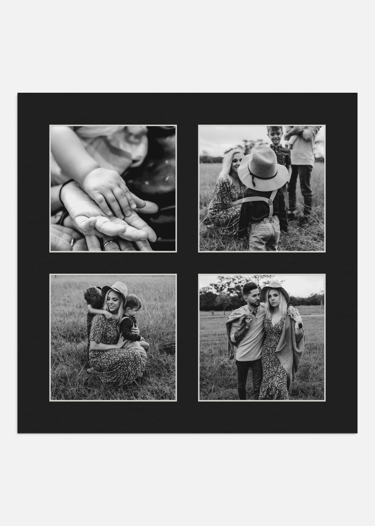 Kiselinski slobodni crni collage passepartou s ukošenim bijelim rubovima najviše kvalitete. U passepartouen ima mjesta za 4 slike. Savršeno kada želite napraviti vlastiti osobni foto-kolaž.