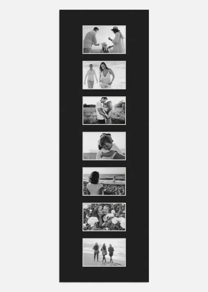 S našim elegantnim crnim passepartoutima možete stvoriti svoj osobni foto kolaž u vašem omiljenom okviru. Savršeno kada želite učiniti nešto posebno s vašim najboljim slikama. U svakom kutu su izrezani bijeli uzorci koji vašim slikama daju dodatnu elegantnu uokvirenost.