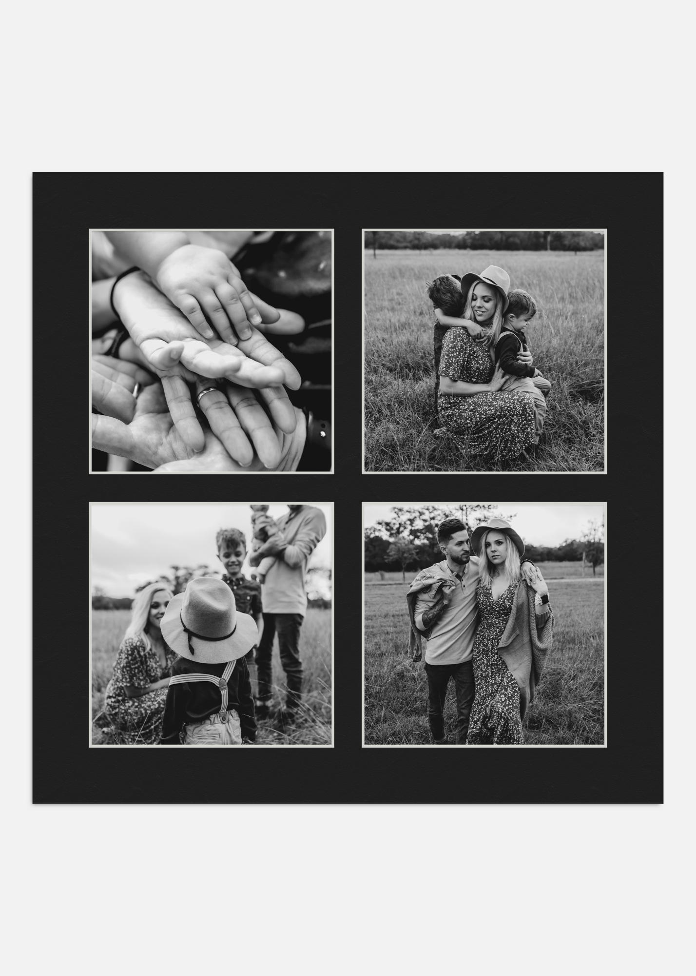 Kiseline slobodan crni collage passepartou sa zakošenim bijelim rubovima najviše kvalitete. U passepartoutu ima mjesta za 4 slike. Savršeno kada želite napraviti svoj osobni foto kolaž.