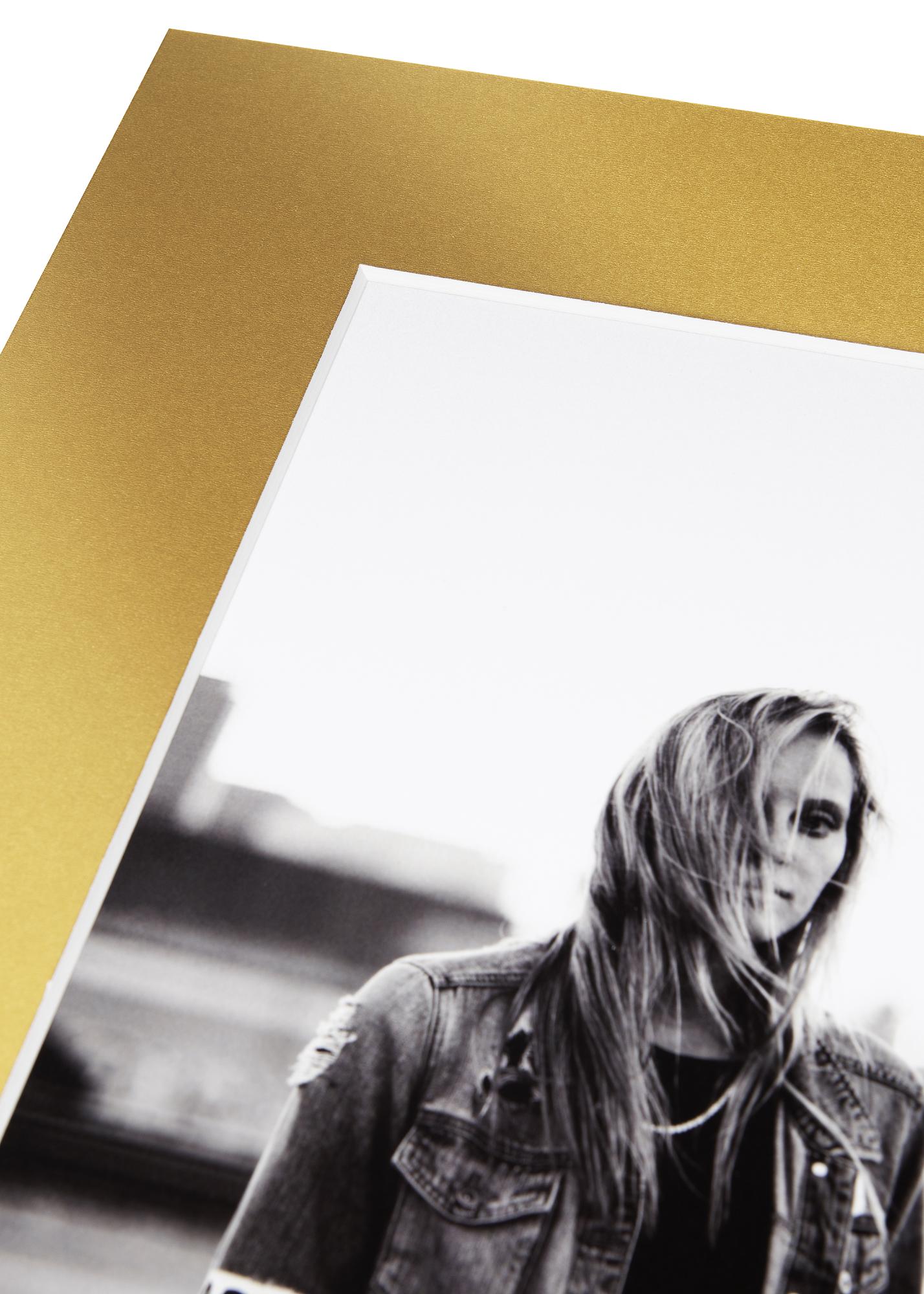 Passepartout Old Gold ima mat zlatnu boju, kao i bijelu jezgru, što znači da bijeli rubovi teku uzduž slike i dodatno ističu motiv.