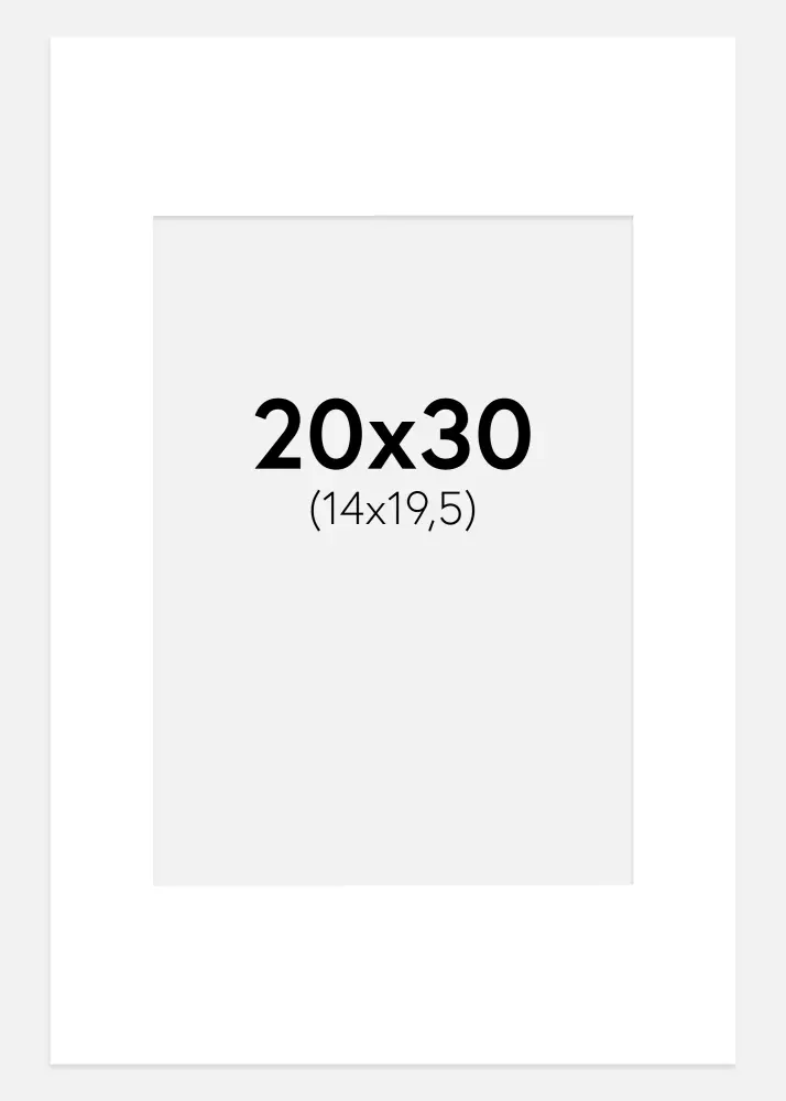 Passepartout Superbijela omogućuje da motiv bude u fokusu, sa svojom superbijelom bojom i bijelim kosim rubovima najbližima slici motiva. Bijeli passepartout također daje prozračan i elegantan dojam! Odgovara u sve okvire koje prodajemo – samo zapamtite da vanjske dimenzije passepartouta trebaju biti iste kao veličina okvira.