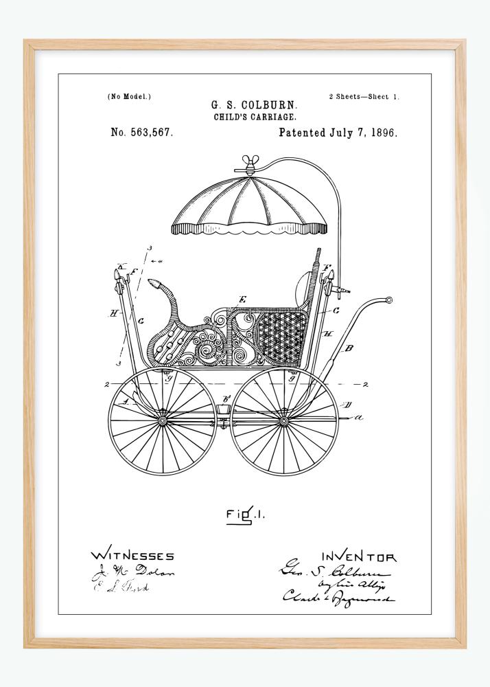 Patentni crtež nije samo zanimljiv dio povijesti nego također estetsko bogatstvo za sve koji cijene vintage i retro uređenje interijera. Ovaj patentni poster je idealan poklon za nove roditelje, kolekcionare dječjih kolica ili kao jedinstven dekorativni detalj u dječjoj sobi. Služi kao tema za razgovor i divan podsjetnik koliko daleko smo stigli u području skrbi za djecu i dizajna.