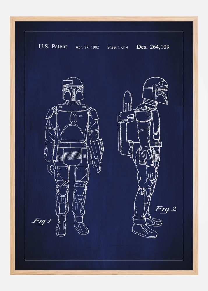 Ovaj elegantni patentni poster je počast inovaciji i neumornoj ljudskoj kreativnosti. S patentnim crtežom datiranim 27. travnja 1982., prikazuje Des. 264,109 oklopno odijelo za Boba Fetta iz Star Wars, čiji je dizajn i funkcionalan i fascinantan. Ovaj poster je savršen za svakoga tko cijeni mješavinu znanosti i umjetnosti, te nudi jedinstven uvid u proces industrijskog dizajna.