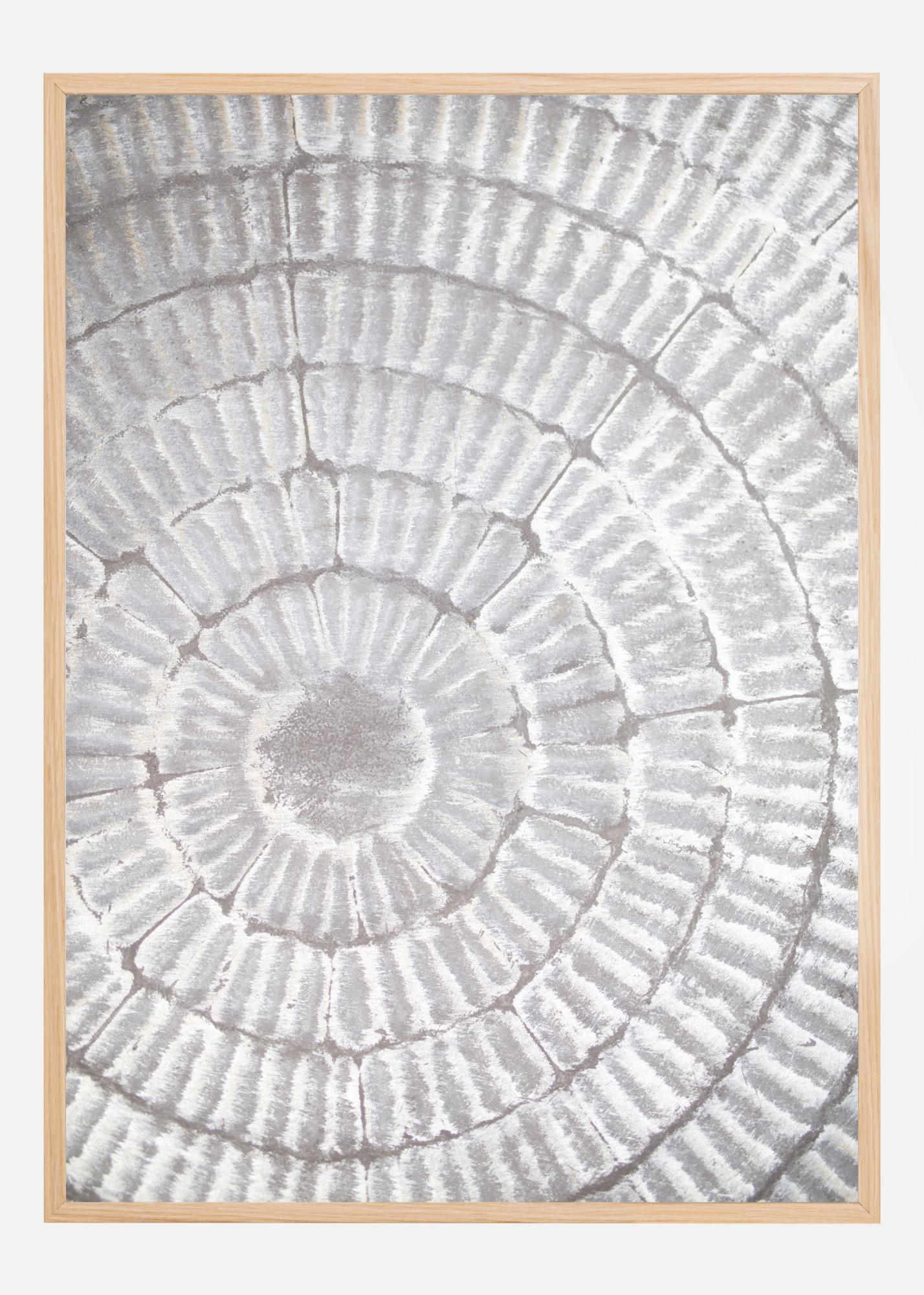 Staklena poster s sivom uzorkovanom pločom. Kružni bež i bijeli prstenovi stvaraju rebrasti izgled na ploči koja oblikuje savršeno glatki krug u sredini. Sa svojim mekim umirujućim bojama, ova prekrasna slika stvara mirnu mistiku. Savršena za objesiti na zid živih boja.