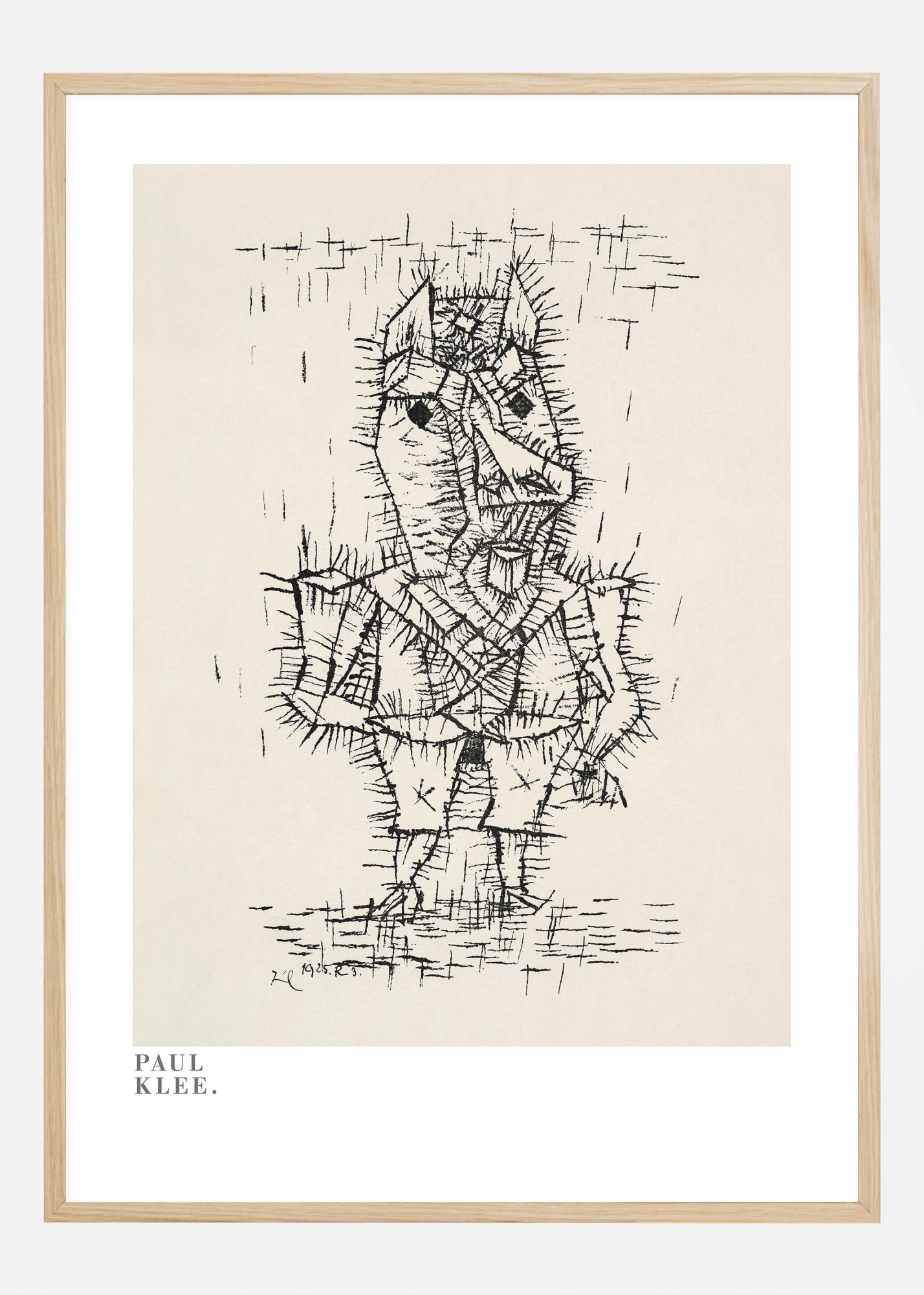 Ovaj poster prikazuje fascinantnu grafičku sliku Paula Kleea "Ass Esel" iz 1925. Predstavlja apstraktnu figuru sastavljenu od dinamičnih linija i oblika koji stvaraju snažan vizualni efekt. Umjetnikova igra s teksturom i linijama oživljava u ovom crno-bijelom djelu, gdje kontrast između hrabrih crta i nježne pozadine stvara uzbudljivu kompoziciju. Ovaj print je refleksija Kleeove sposobnosti da transformira jednostavne obrise u izražajne i emocionalno nabijene slike.