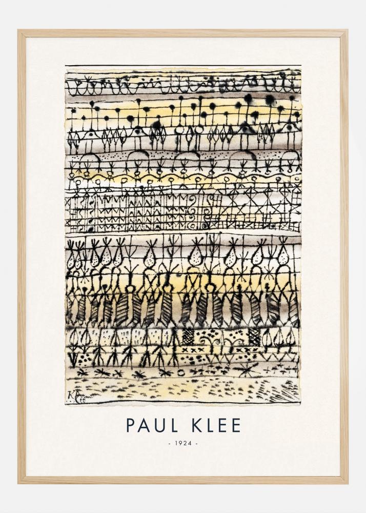 Ovaj poster prikazuje djelo Paula Kleea "Cooling in a Garden of the Hot Zone" iz 1924. godine, kompleksni uzorak linija i oblika koji podsjeća na vrt u apstraktnom krajoliku. Na razigran način, Klee istražuje teme prirode i strukture slojevitošću simboličkih i geometrijskih elemenata, stvarajući ritmičnu i gotovo glazbenu kompoziciju. Raznolikost upotrebe vrsta linija i kontrastnih boja oživljava apstraktni vrt na način tipičan za Kleeovu umjetnost.
