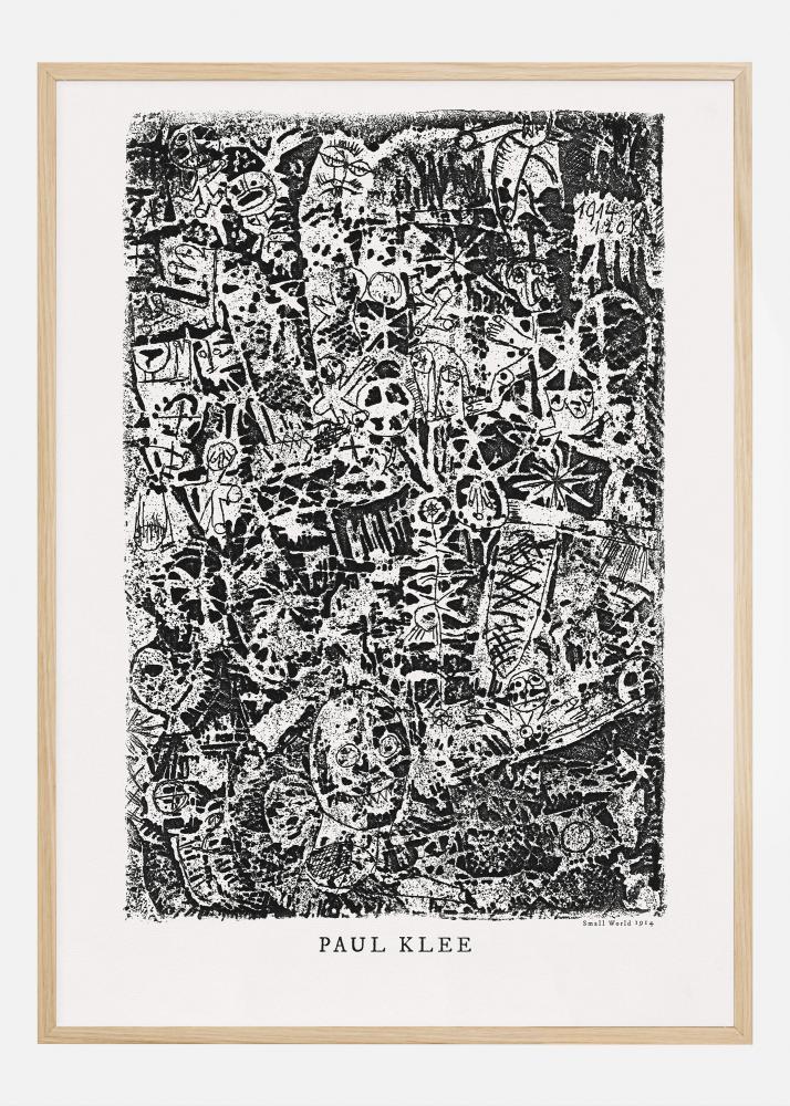 Ovaj poster prikazuje "Mali svijet" Paula Kleea iz 1914. godine i predstavlja značajan primjer umjetnikovog ranog istraživanja grafičkih uzoraka i simbola. Ovaj otisak karakteriziraju detaljno razrađene i složene linije koje se isprepliću kako bi stvorile dubok i složen slikovni svijet. Savršeni je poster za one koji žele unijeti element umjetničke povijesne važnosti i intelektualne stimulacije u svoj dom ili radno mjesto.