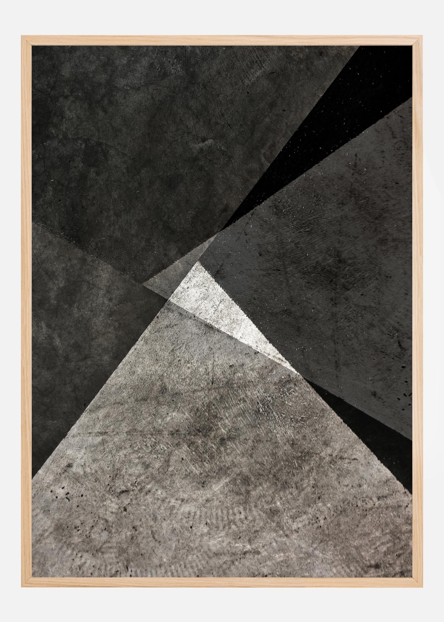 Tajanstveni otisak s crnim i bijelim trokutastim oblicima postavljenim na pod. S prirodnom svjetlošću koja sjaji na pločicama nejasno je je li manji trokut bijeli ili ga samo obasjava svjetlost. Ovo je savršen poster za objesiti na glatki zid.