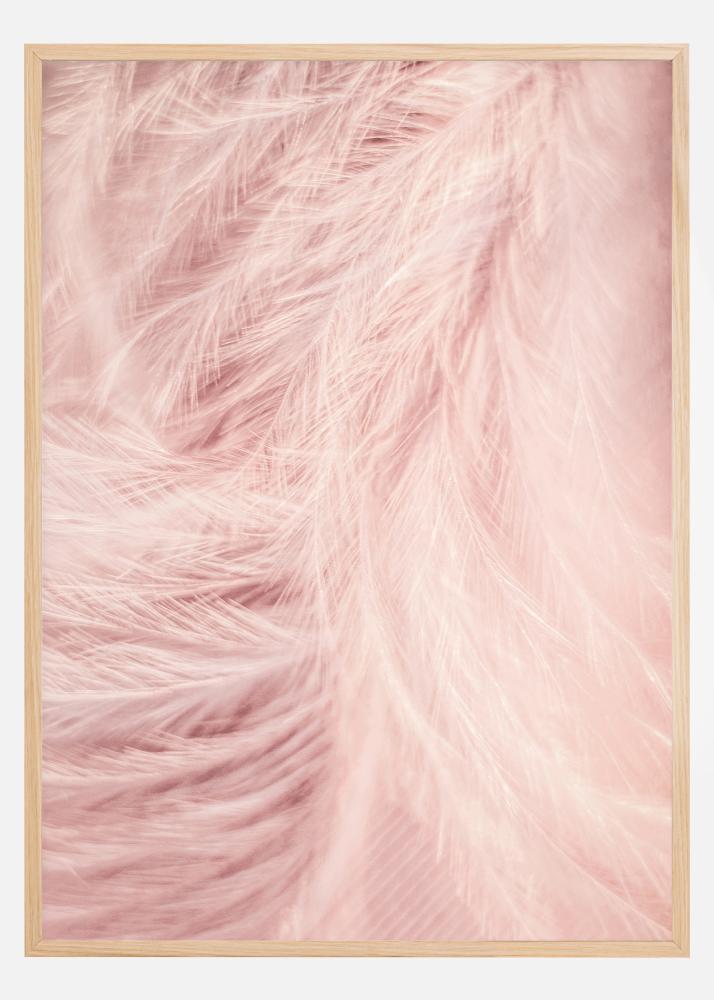 Prekrasan poster izbliza s nježnim ružičastim perjem. Zahvaljujući jakom svjetlu koje obasjava perje, nejasno je je li perje doista ružičasto ili bijelo. Je li to ružičasto svjetlo koje se reflektira na perju? Objesite ovo u svom domu za nježan topao osjećaj.