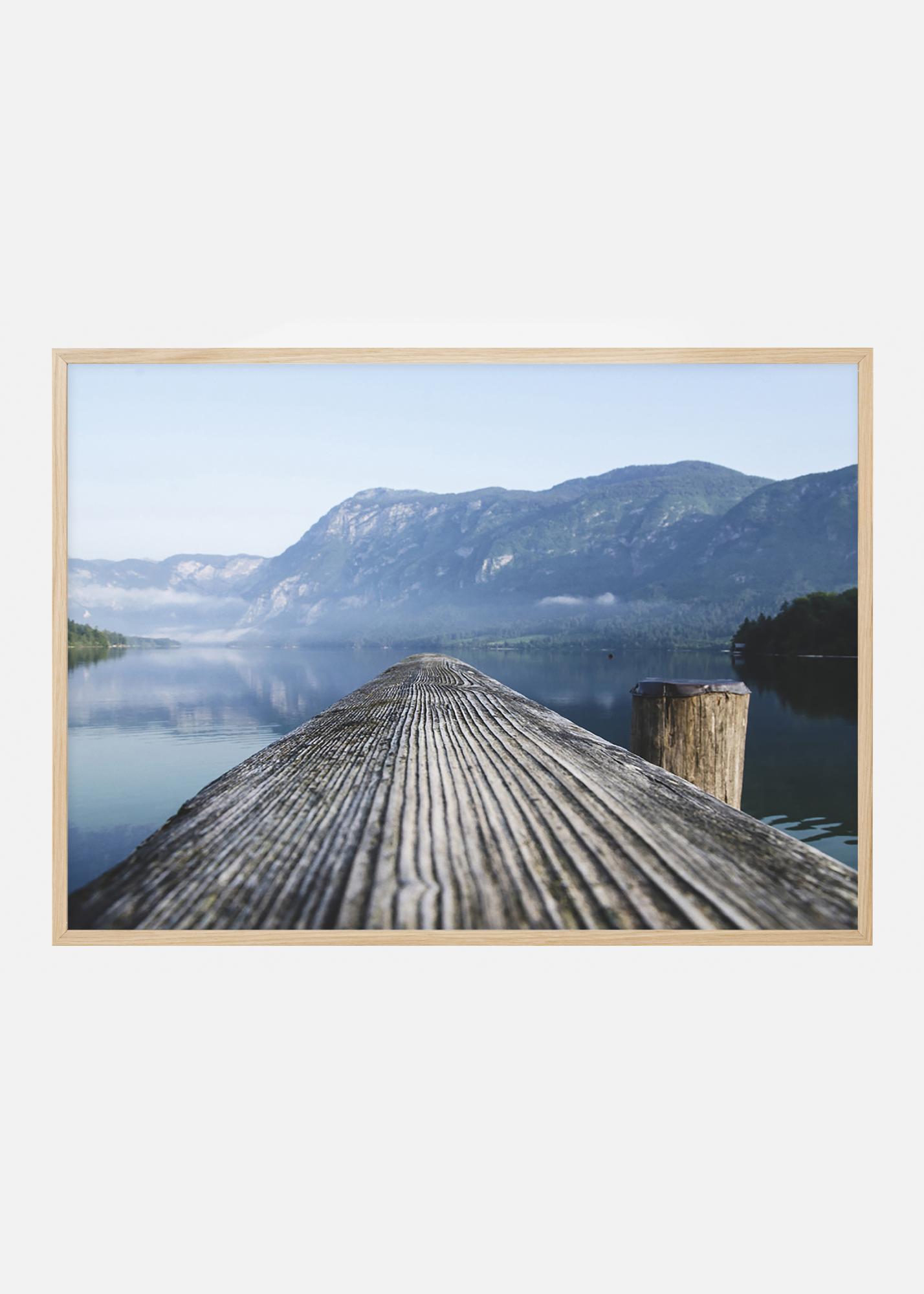 Pogled na veličanstveni krajolik fjorda s oštećenog pristaništa. Pejzažni print u plavim tonovima koji jednako dobro pristaje kao samostalna slika na zidu ili u kombinaciji s pomorskim dodacima ili drugim slikama. Dopunite sivi drveni okvir za pojačavanje boja na slici, ili tanjim crnim okvirom za minimalističkiji izraz.