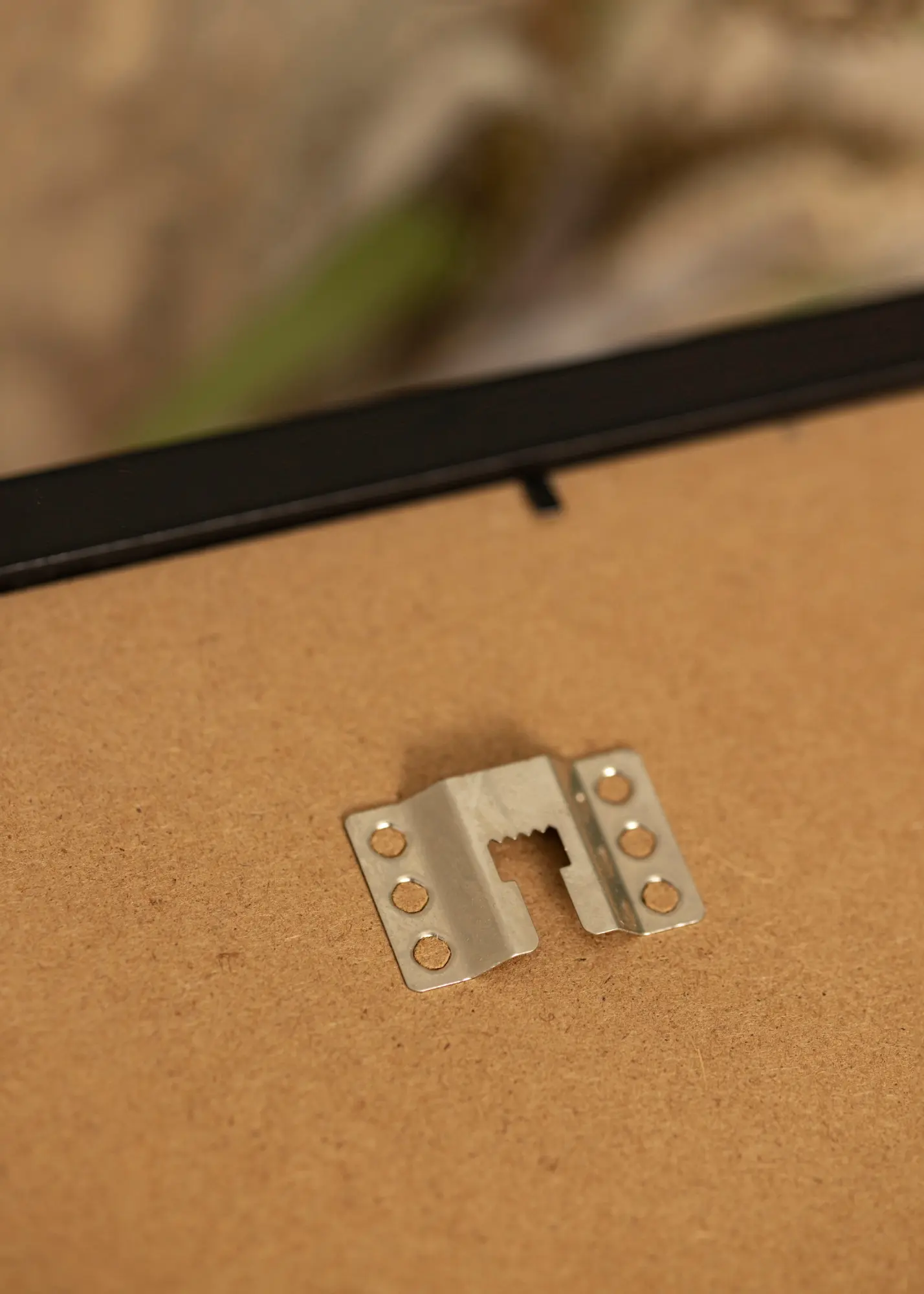 Okvir ima rub širok 14 mm i dubok 20 mm, što mu daje robusni i stabilni osjećaj. Mat površina doprinosi diskretnom, ali sofisticiranom izgledu koji ne nadvladava motiv, već ga ističe na ukusan način. Ovaj okvir za slike opremljen je metalnim kukama na stražnjoj strani, što olakšava njegovo vješanje horizontalno ili vertikalno, ovisno o tome što najbolje odgovara vašem motivu.